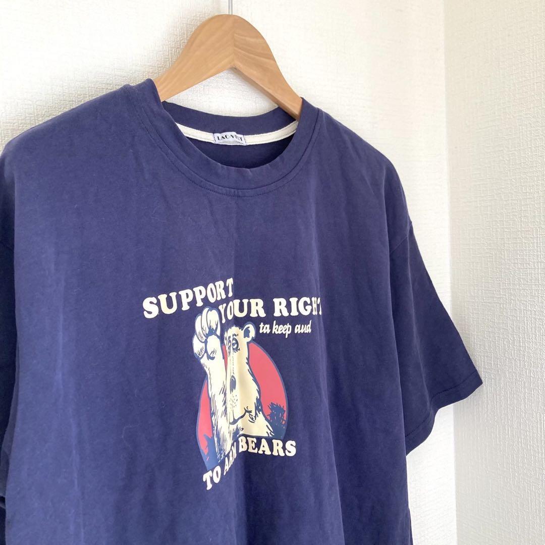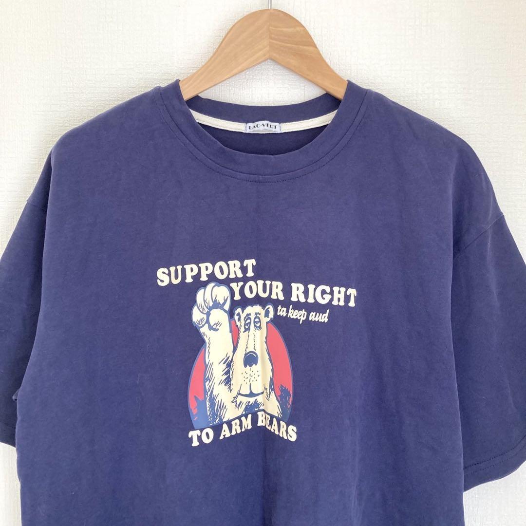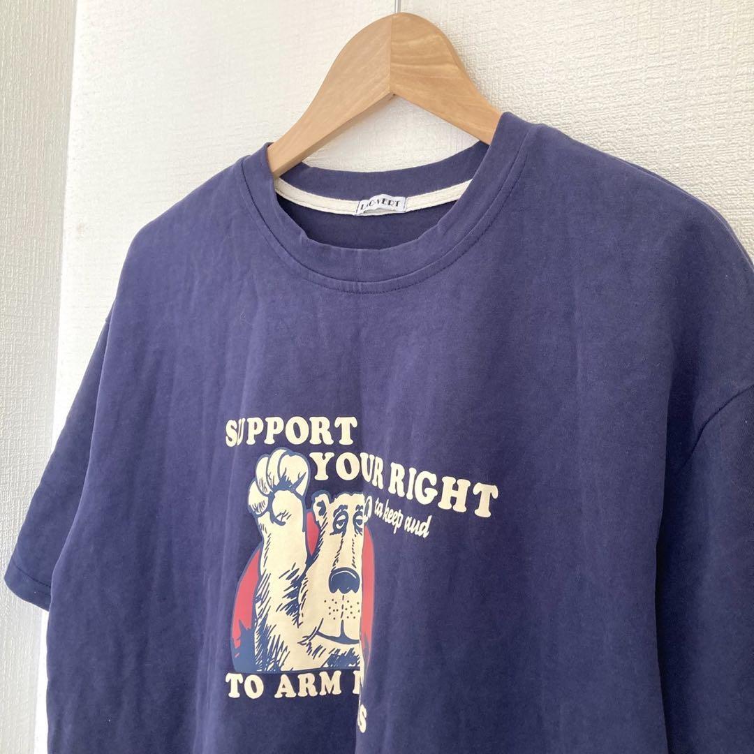 アニマルTシャツ イヌ レディース ネイビー 半袖 丸首 コットン フリーサイズ