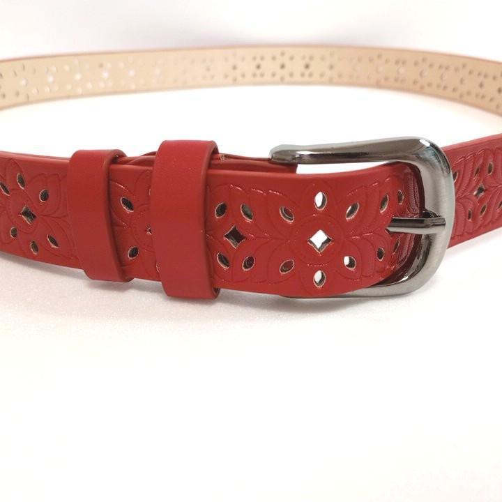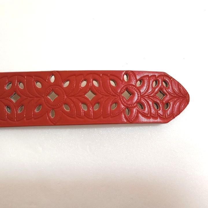 この花柄レザーベルトは、ソフトな質感とヴィンテージ感が魅力のユニセックスデザインです