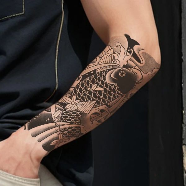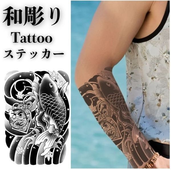 登り鯉 鯉 達磨 タトゥー Tattoo シール ステッカー 和柄 腕 足 モノクロ 入れ墨 刺青 防水 コスプレ 小物 防水 小道具 ファッション シール