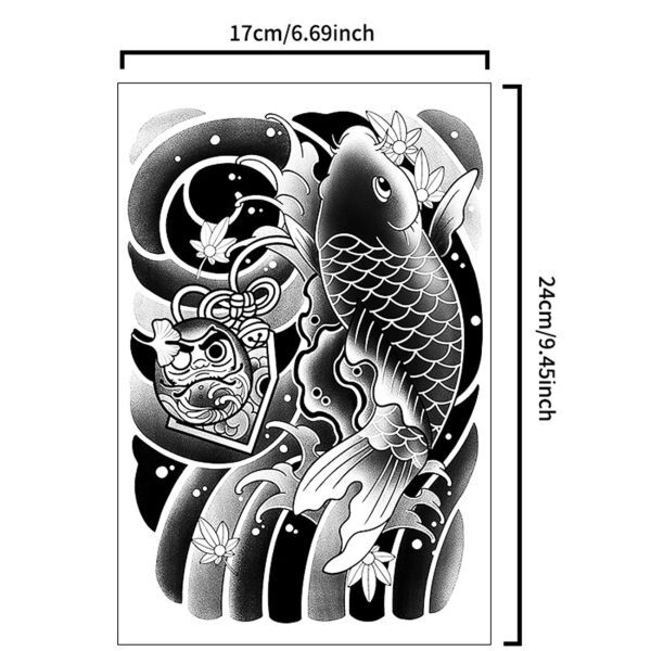 登り鯉 鯉 達磨 タトゥー Tattoo シール ステッカー 和柄 腕 足 モノクロ 入れ墨 刺青 防水 コスプレ 小物 防水 小道具 Z221