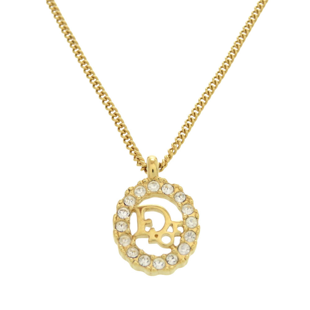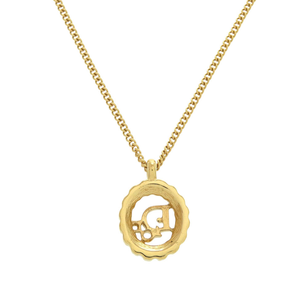 美品 クリスチャン ディオール ヴィンテージ ロゴ ストーン ゴールド ネックレス アクセサリー 0898 Christian Dior