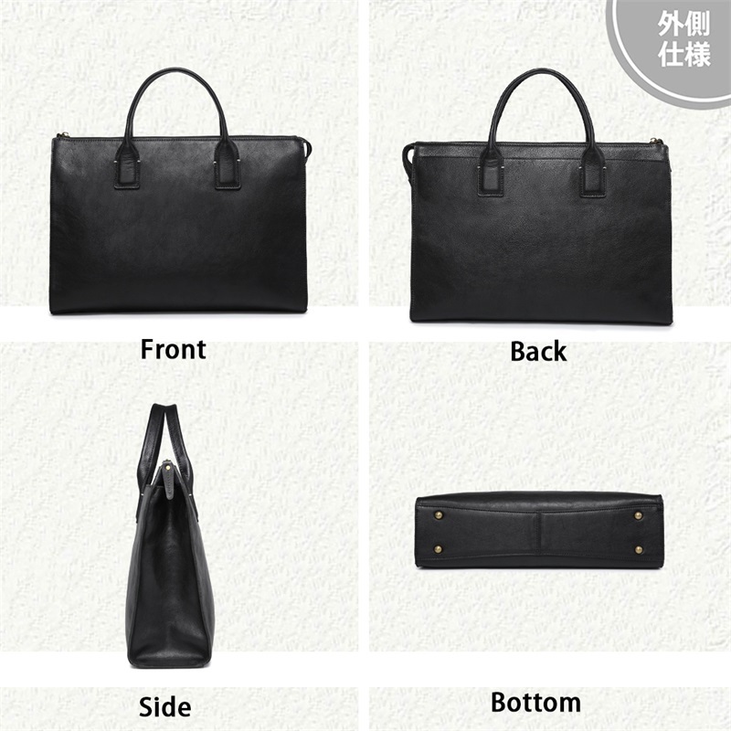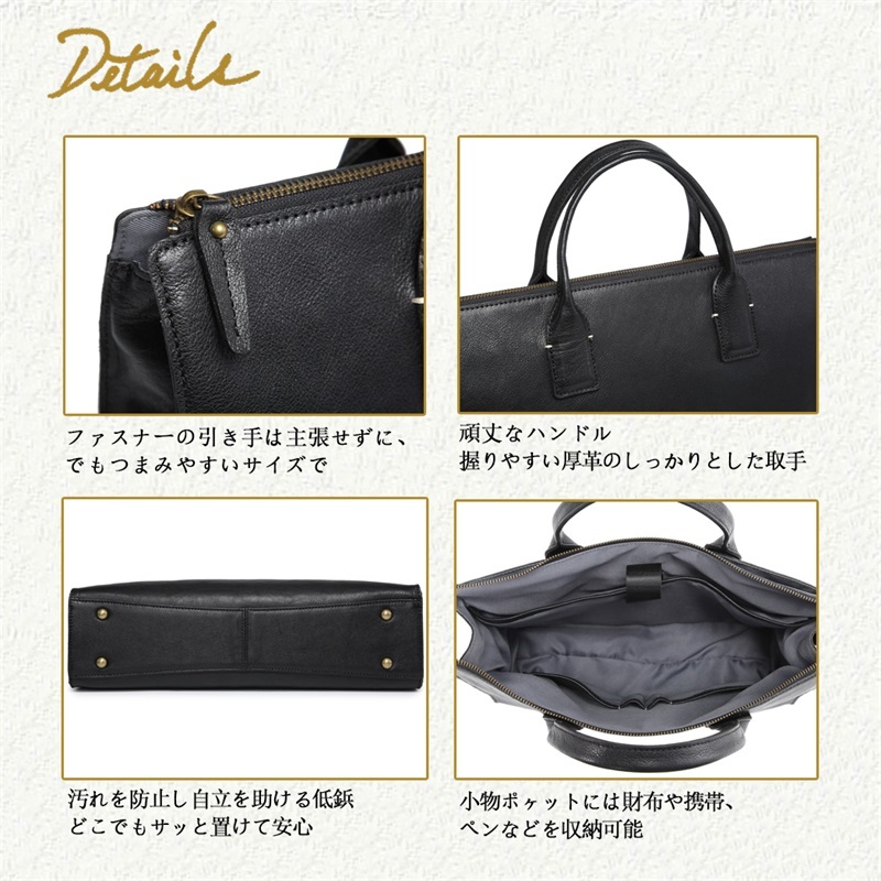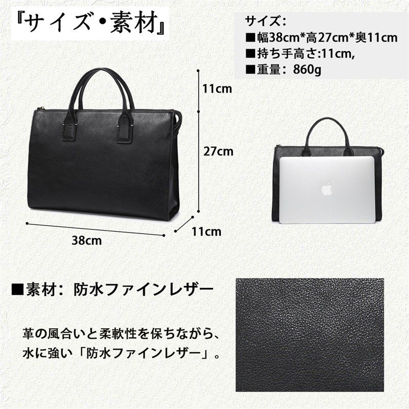 ブリーフケース 防水 メンズ ビジネスバッグ 本革 レザー大容量 A4対応 PC 通勤 自立 出張 ブラック TC58