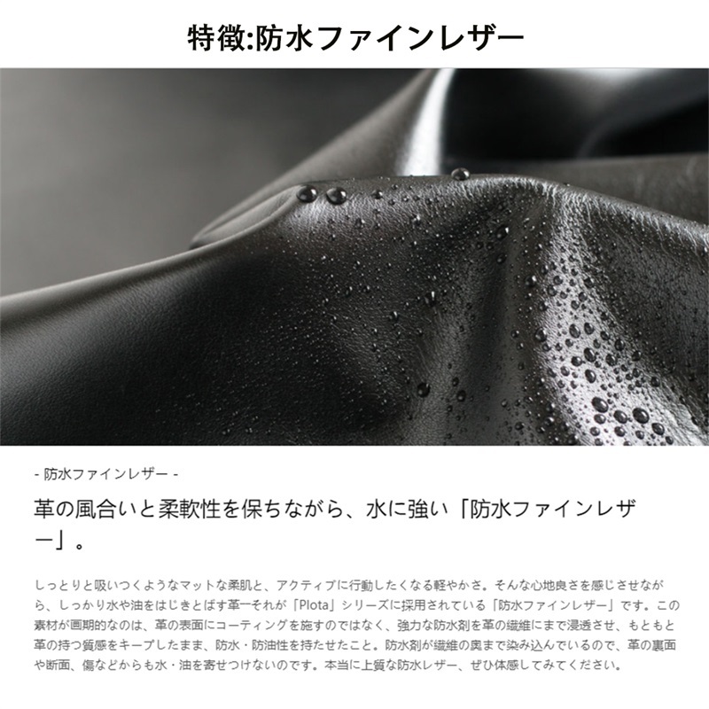 素材は、濡れても水が浸みこまない「防水ファインレザー」を採用。防水仕様とは思えない軽さとしなやかさ、