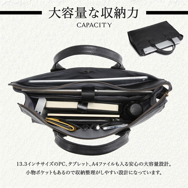 ■A4ファイルやノートPCが楽に収納できるサイズ感。ビジネスも休日もこれ一つでスマートに。