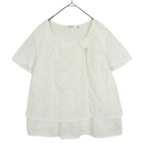 | 商品説明 | 【実寸約】肩幅36袖丈17バスト94着丈46(cm) 【サイズ表記】 3(サイズ9号) 【素材】 綿100% 【状態】普通の使用感のあるお品物 首回りや脇下に黄ばみ、シミあり 【デザイン】白系 重ね着風の半袖ドッキングカットソーです。 フロントはカットワーク刺繍、バックは無地のカットソー素材。 薄手/花柄&無地 |