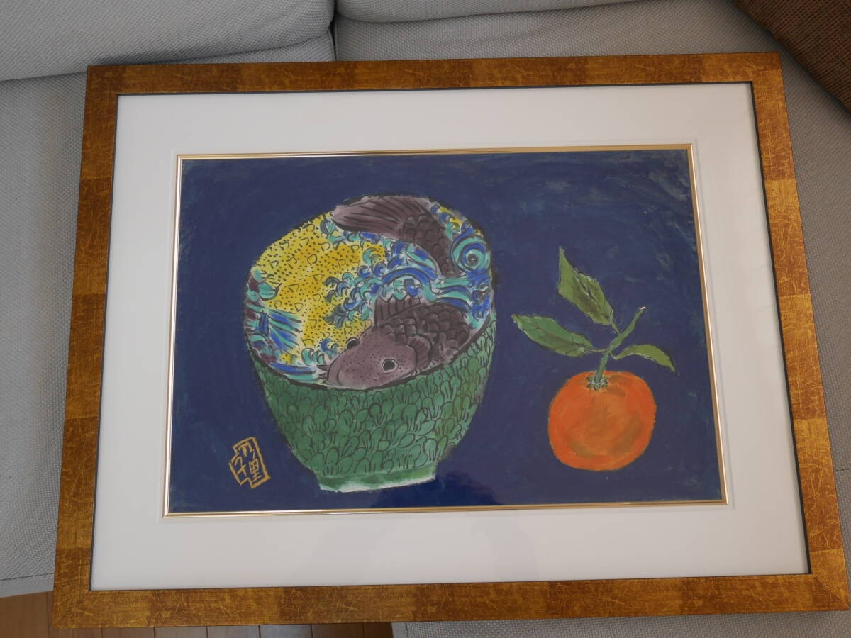 2023年のお正月に百貨店で購入しました。(購入価格は20万円後半と記憶しています。青木乃里子さんの「鯉門鉢」原画です。2年間和室に飾っていました。(ペット、タバコ臭なし)額の大きさは横約78センチ縦60センチです。商品には絶対の自信がありますが、トラブル防止のため返品に応じます。ただし、返品時の送料、返金時の振り込み手数料、ヤフーに支払いする手数料8.8%(13,200円)負担して頂けることを条件とします。