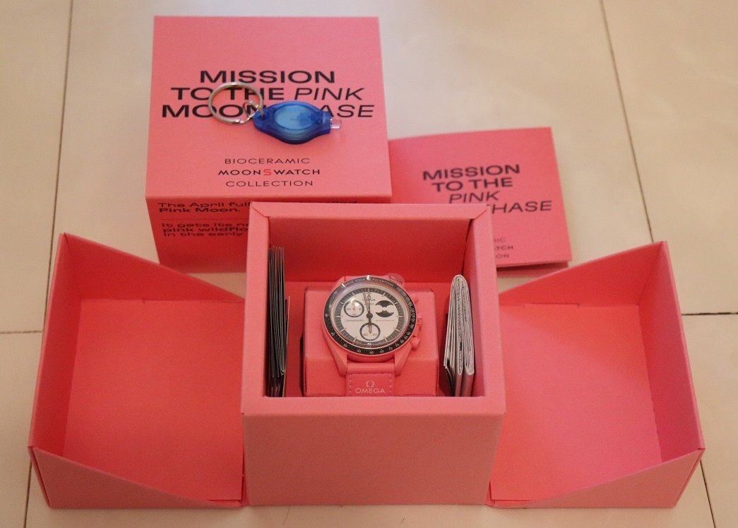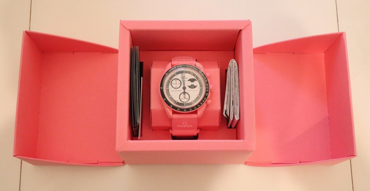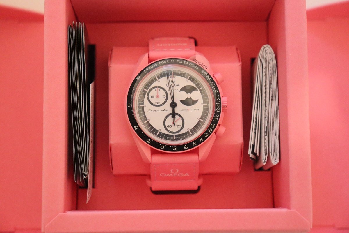 OMEGA X Swatch新品クォーツクロノグラフ腕時計スイス製箱説明書保証書付Mission to PINK MOONPHASE限定品