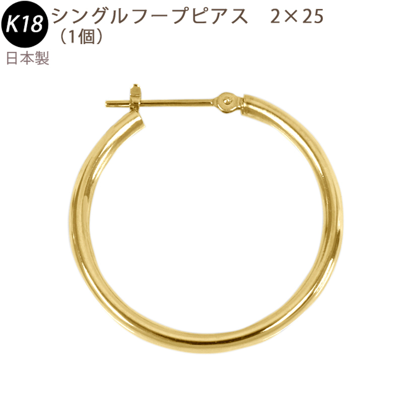 | 商品名 | K18 フープピアス 2ミリ幅 25mm(1個)片耳用 日本製 ※フープ部分がパイプ状になっており、とても軽く作られています。 付けごこちもよく、重さも気になりません☆ |