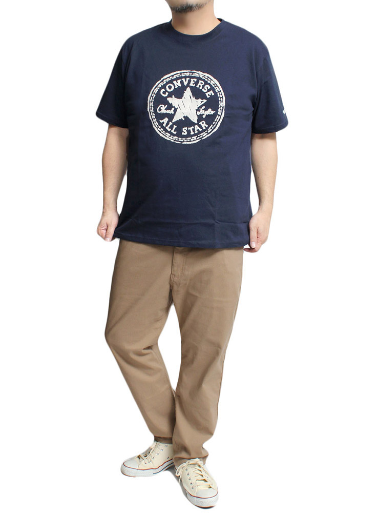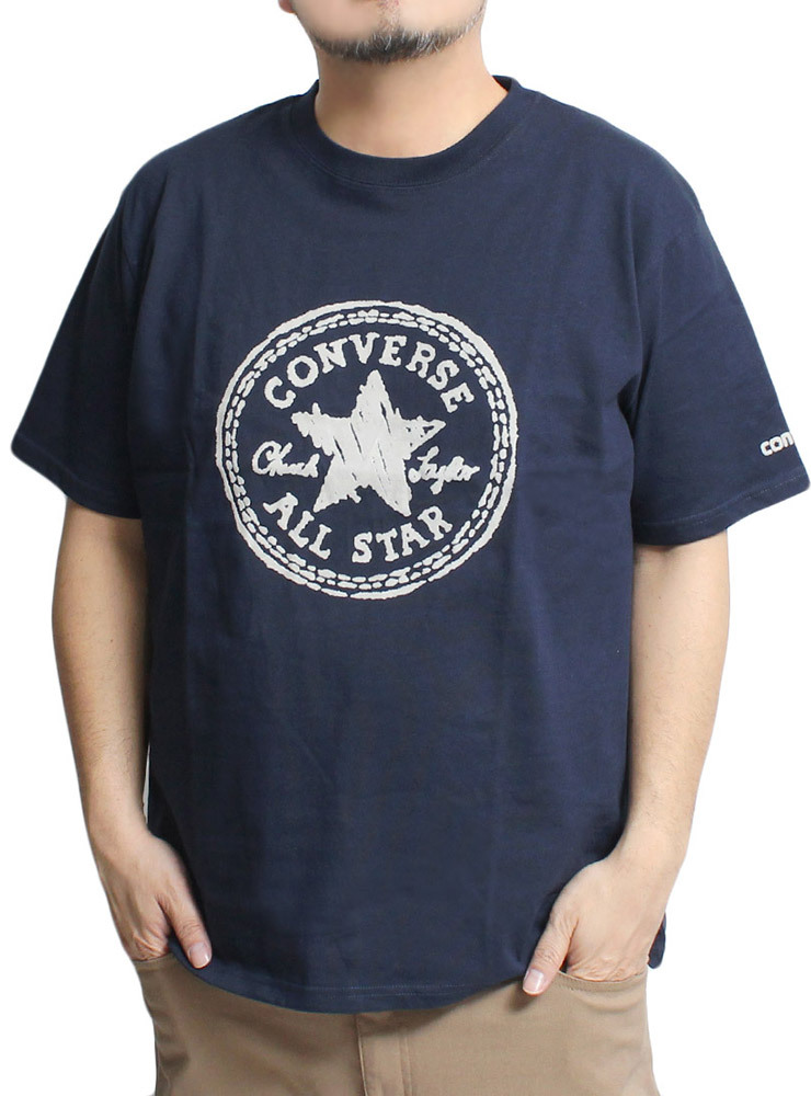 商品名 | 【新品】 5L ネイビー コンバース CONVERSE 半袖 Tシャツ メンズ 大きいサイズ フロッキー ロゴ プリント クルーネック カットソー |