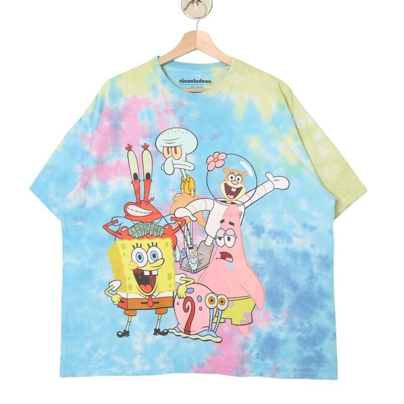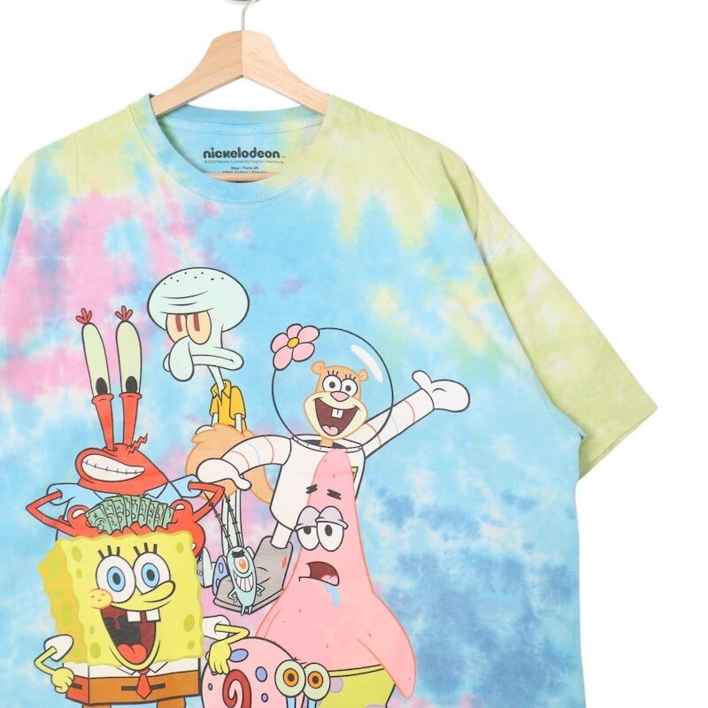 nickelodeon スポンジボブ タイダイ染め クルーネック半袖プリントTシャツ メンズUS-2XL キャラクター アニメ hsc-0222n