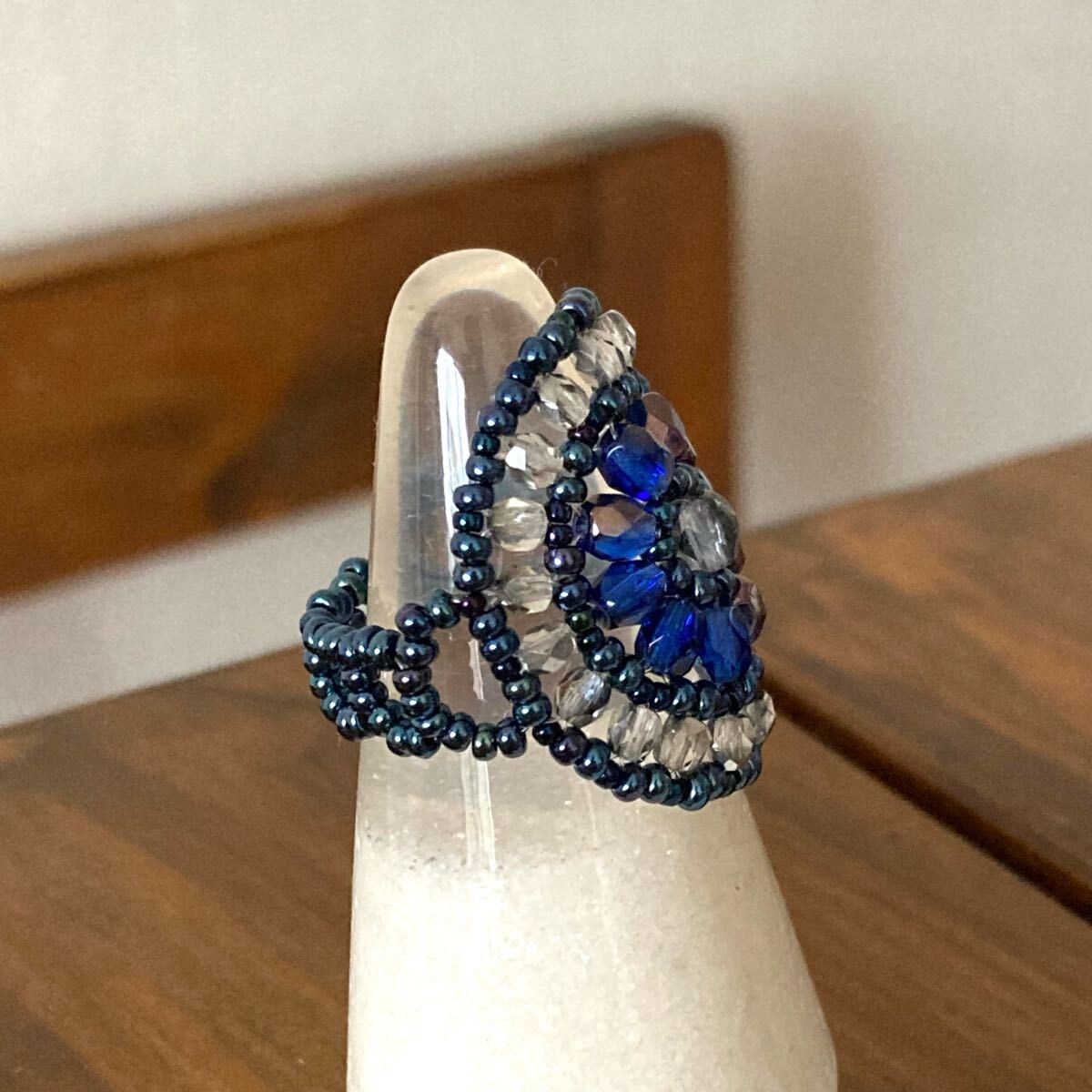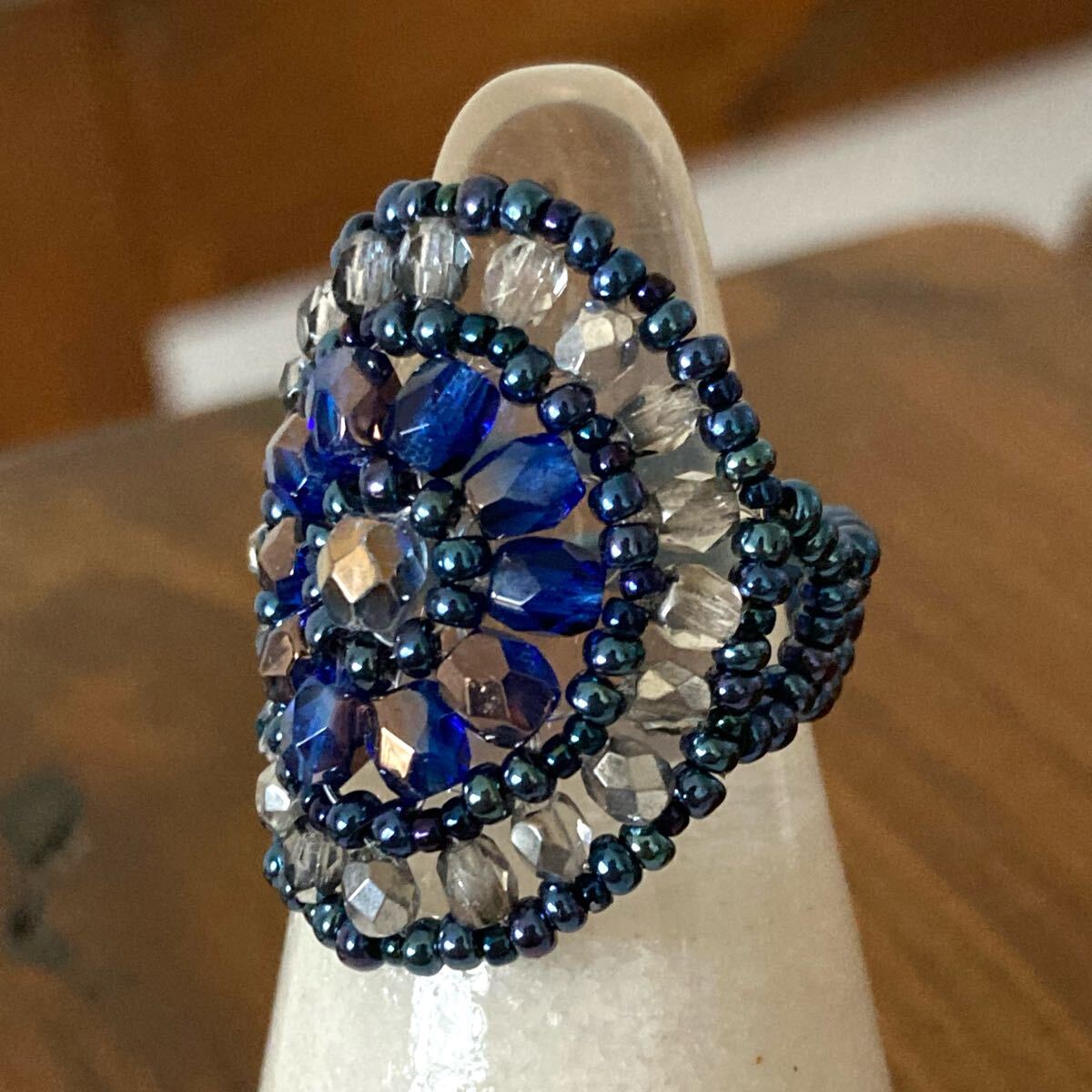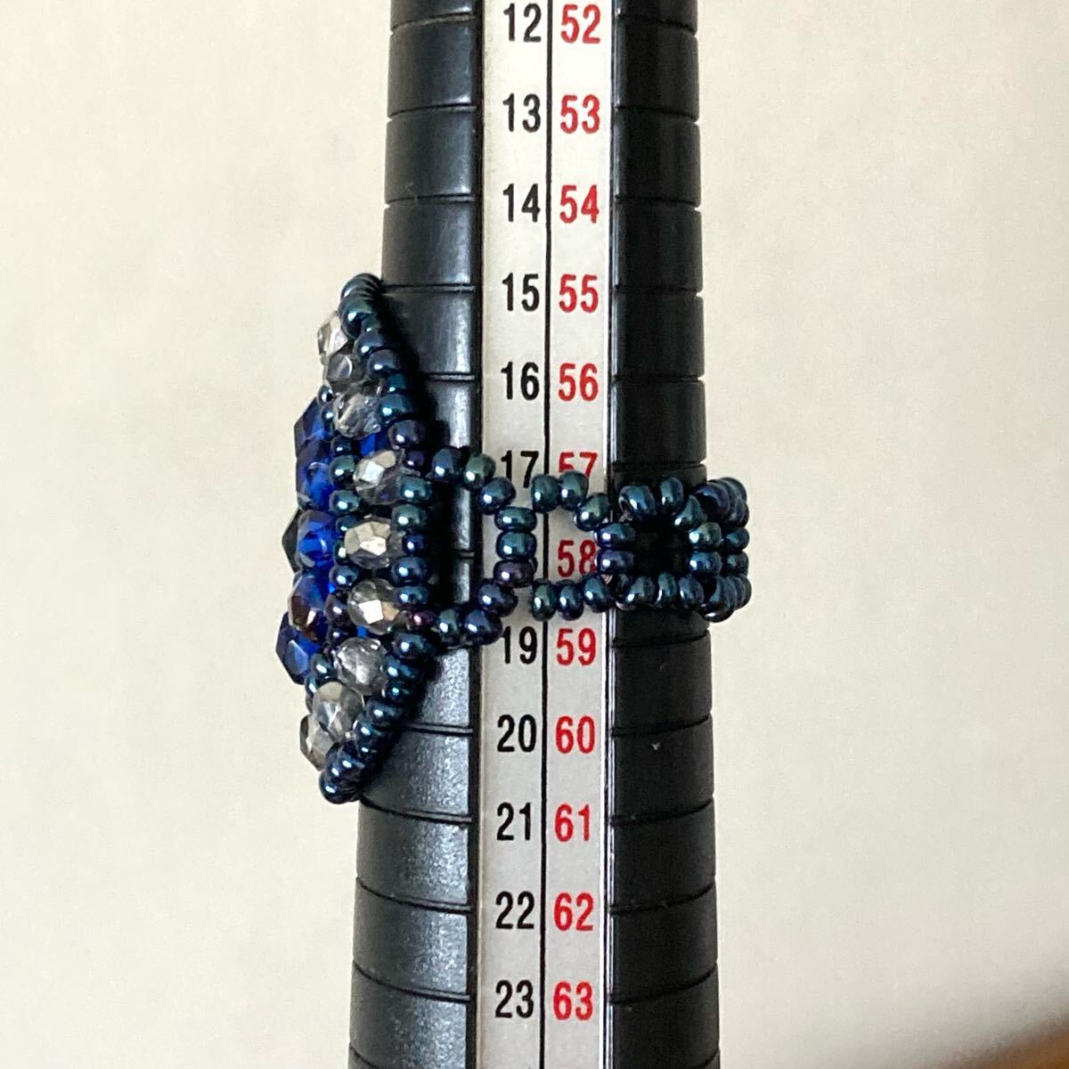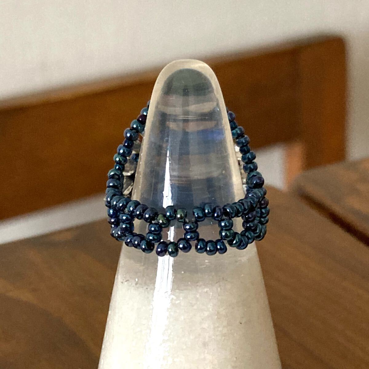 ビーズ  リング  指輪  ハンドメイド 大きい丸型 ブルー×グレーシルバー 17-19号です。