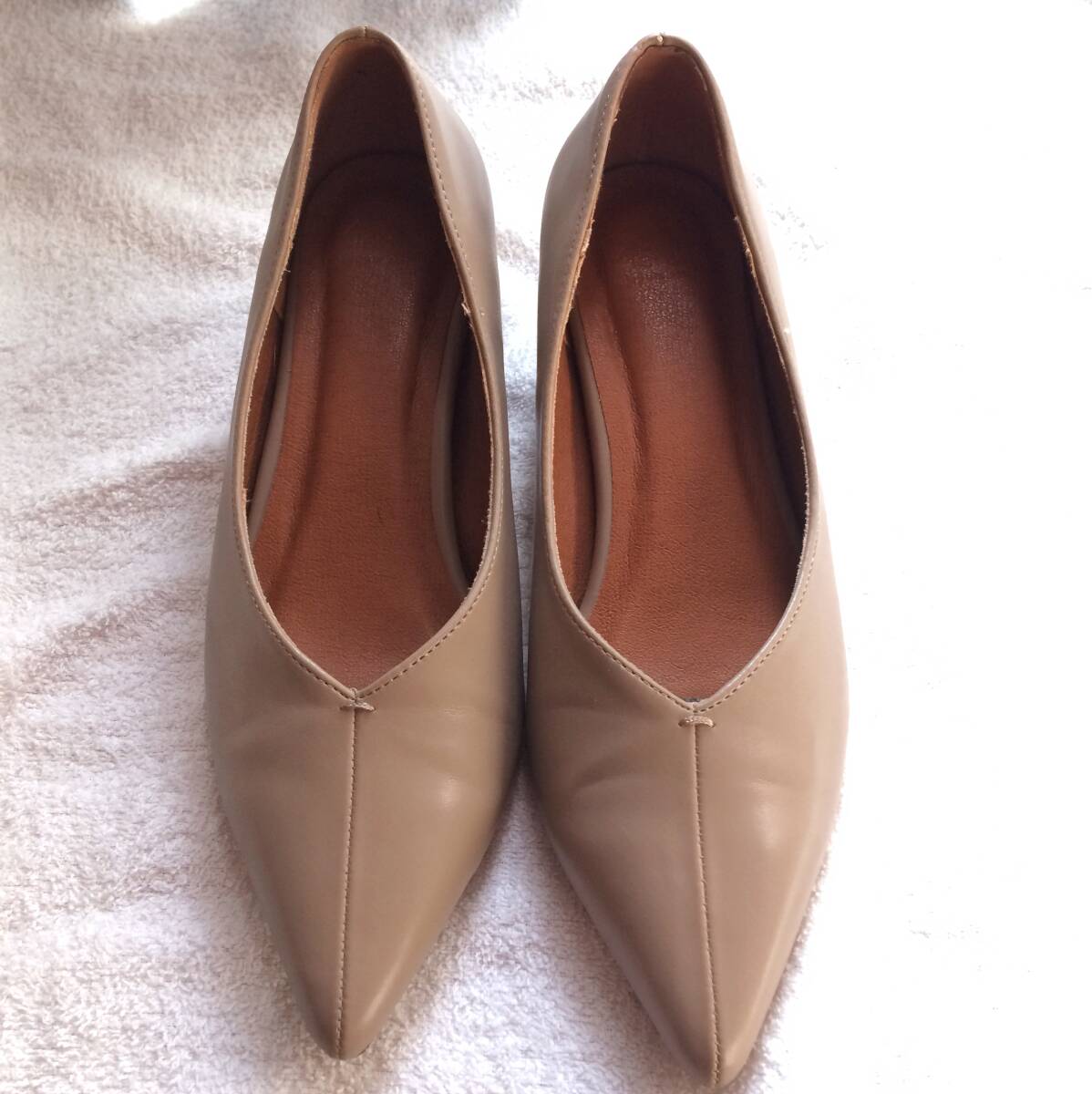 ころんとフォルムが大人かわいい、丸ヒールセンターシームパンプス。