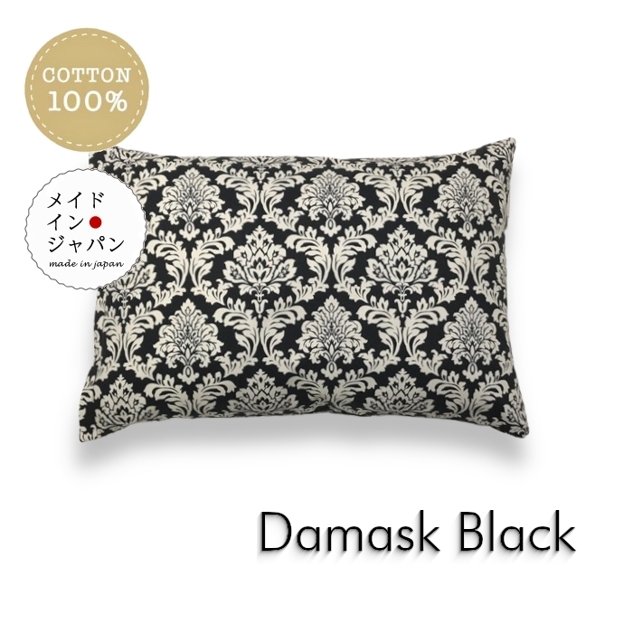 Sサイズ枕カバー ダマスク ブラック ピローケース 35×50cm 綿100%