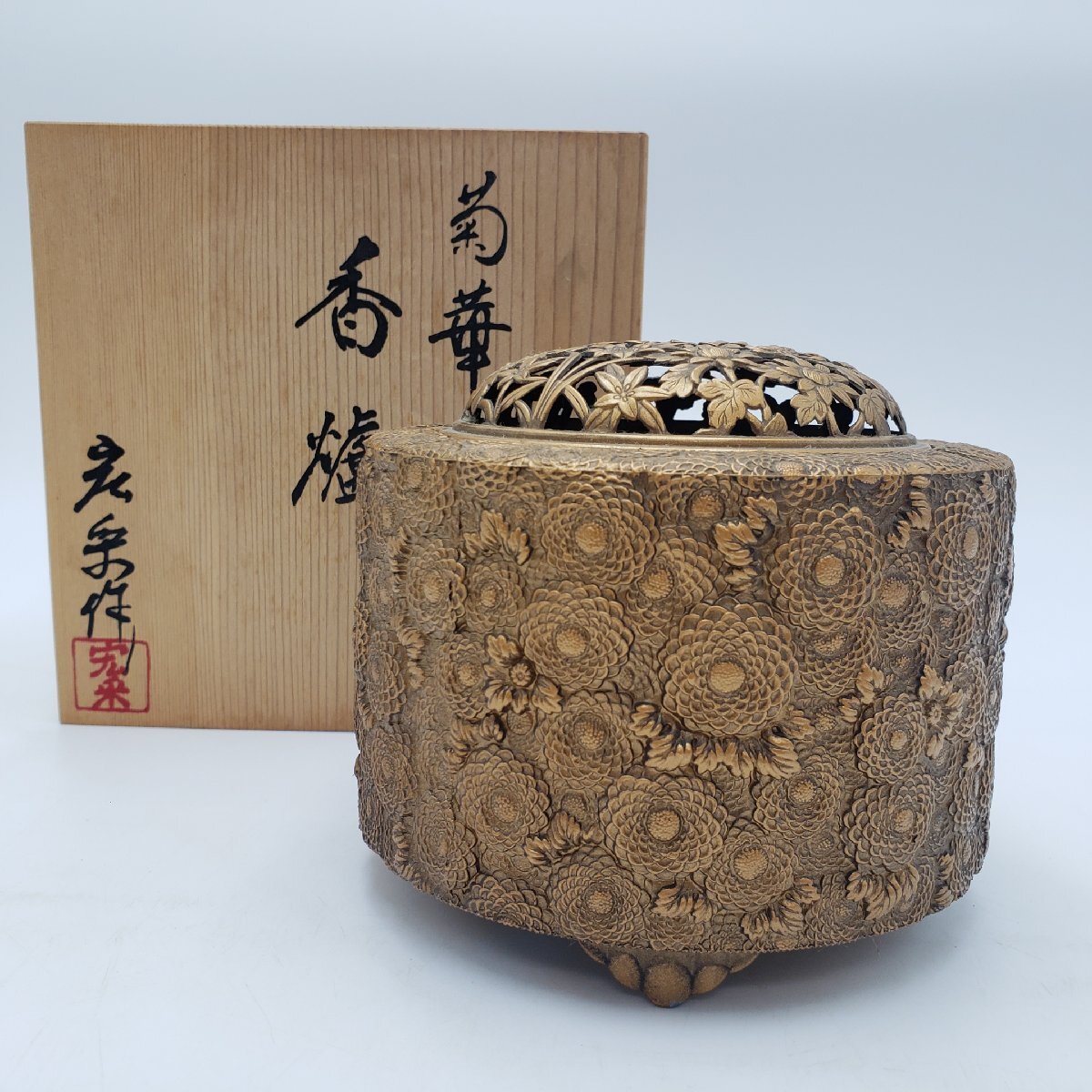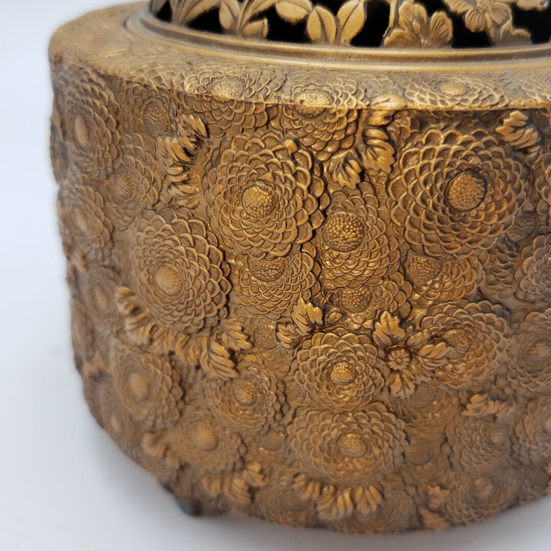 商品名 | 香炉 佐野宏采造 高岡銅器 銅製 細密菊花細工 菊華 金工美術 三足 匠の技 透かし彫り 共箱共布 伝統工芸品 | |||||||||||||||||||||||||