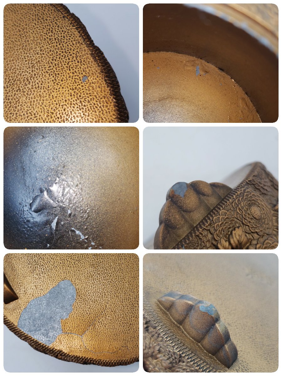 傷、擦れ、一部変色ございます。銅剥がれている箇所と剥がれそうな箇所がいくつかあります。共箱にも経年劣化ございます。