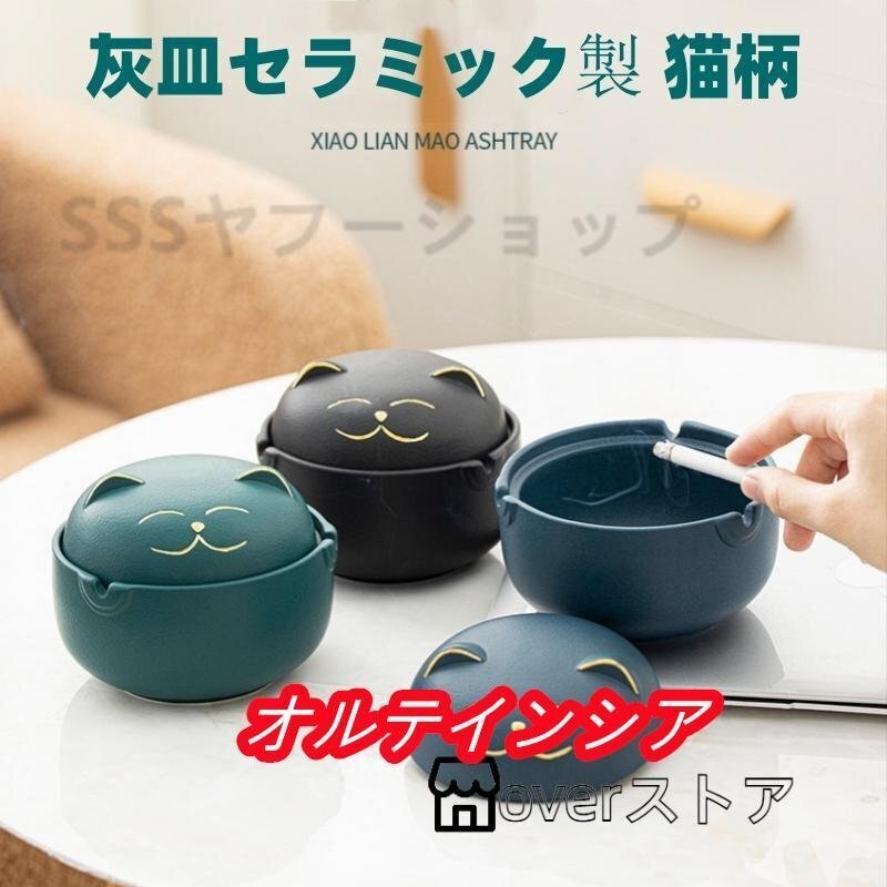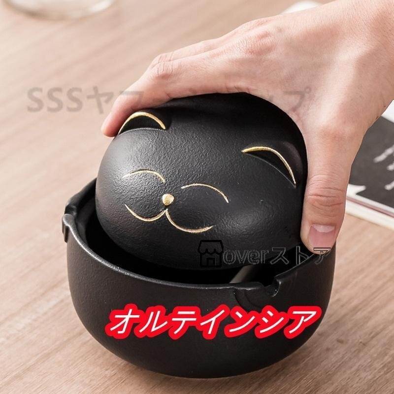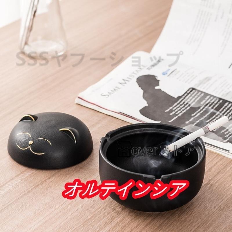 灰皿 蓋付き 卓上 セラミック製 猫柄 客室 オフィス カー 車 屋外 室内 タバコ ふた付き 卓上灰皿 おしゃれ ビジネス 防風 大容量 高級感