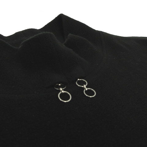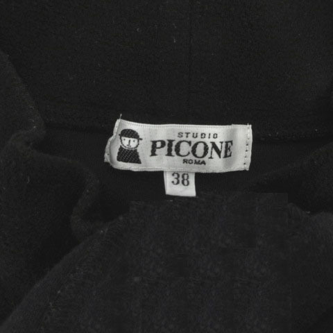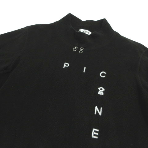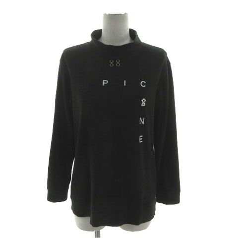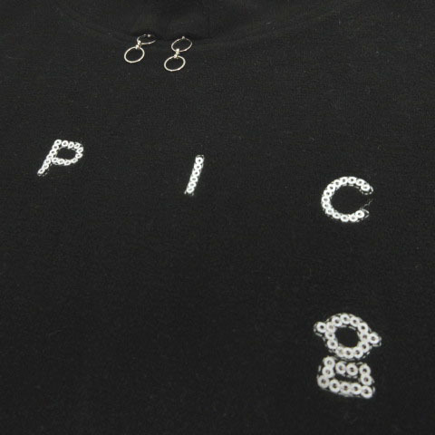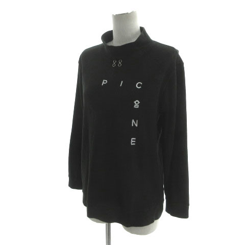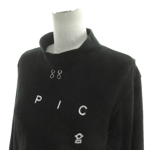 スタジオピッコーネ STUDIO PICONE カットソー フリース オフネック ロゴ スパンコール コットン混 ブラック 黒 38 レディース