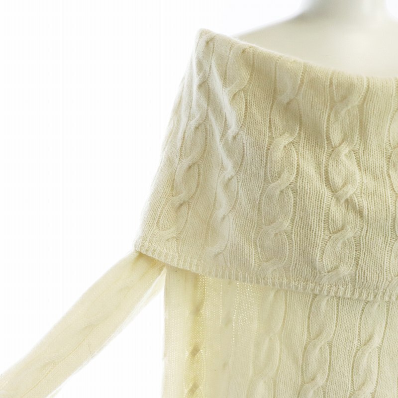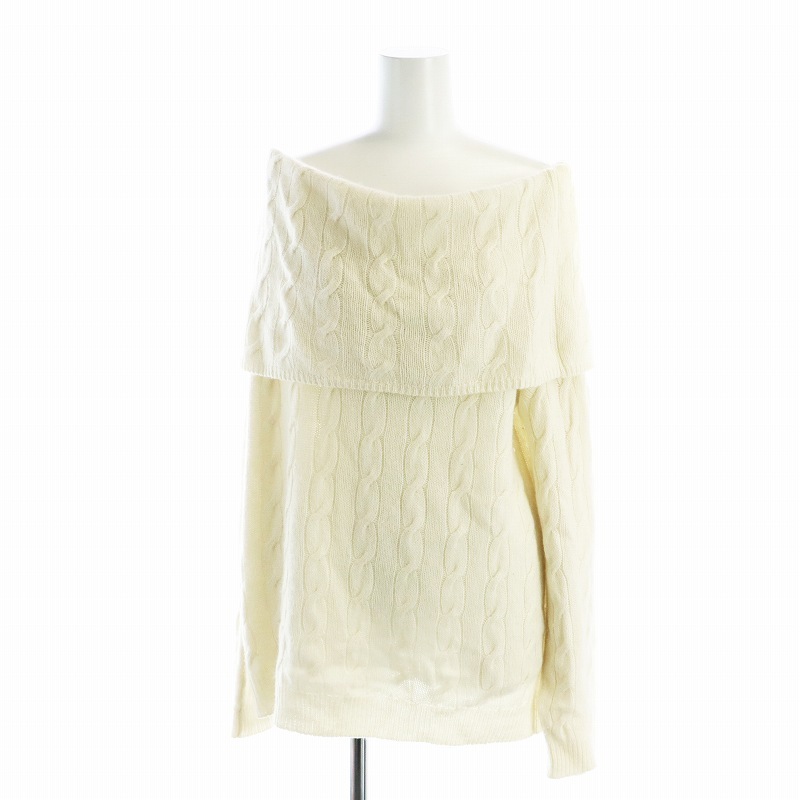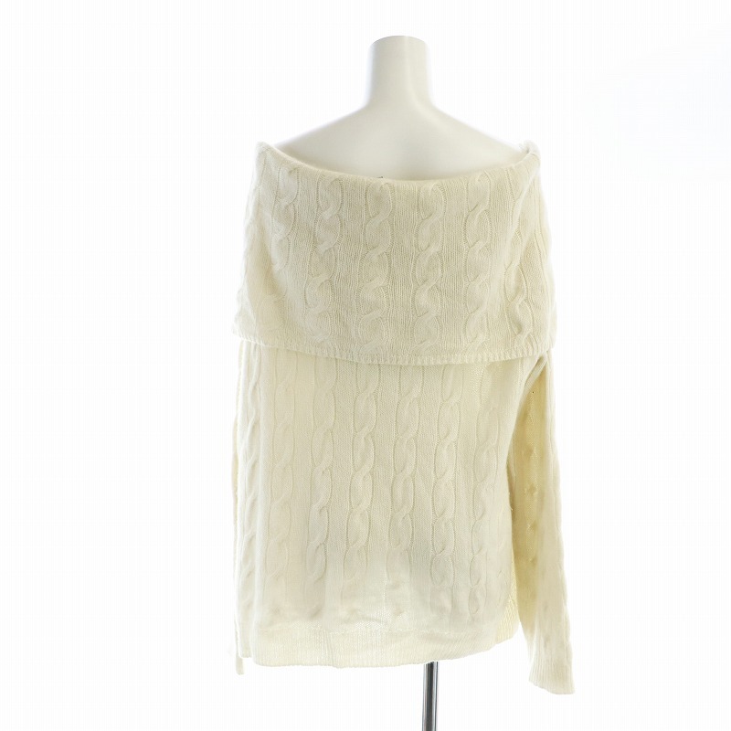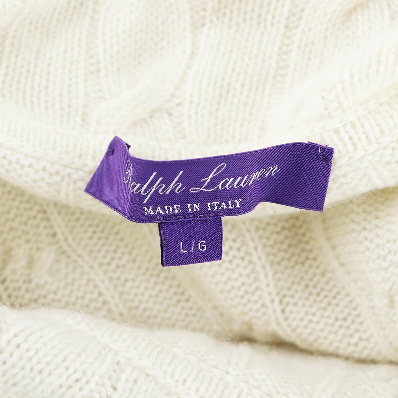 ラルフローレン パープルレーベル ニット セーター オフショルダー 長袖 タートルネック ケーブル編み L アイボリー レディース