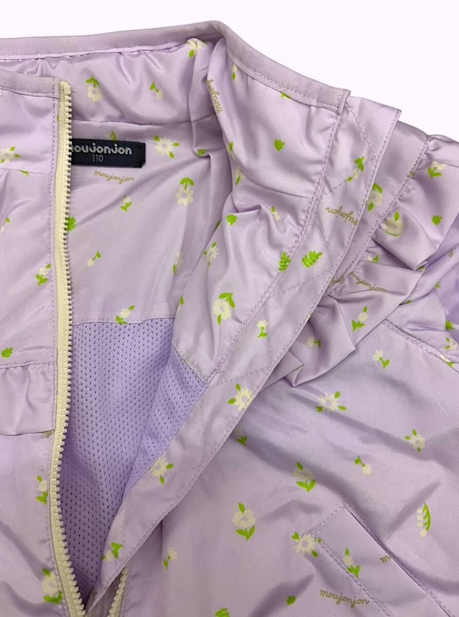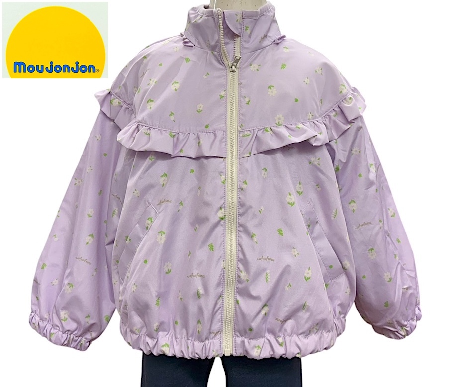 即決 新品タグ付 Moujonjon ムージョンジョン★裏メッシュ 小花柄 タフタジャケット パーカー★フード収納 撥水加工★130cm 9-10才 ¥2640