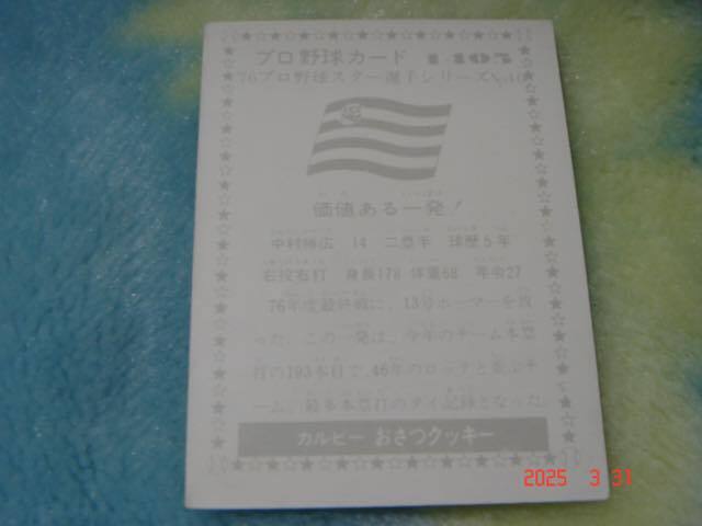 激レア・76年最終ブロック カルビー76年プロ野球カード『'76プロ野球スター選手シリーズ』NO .1405 (中村/阪神) 黒版