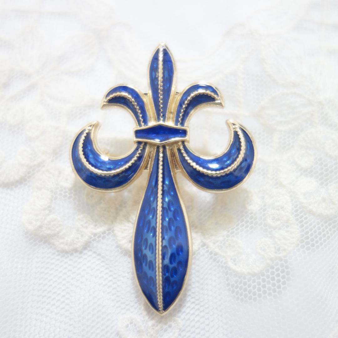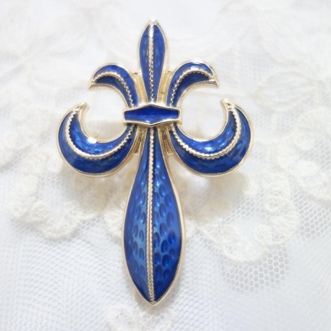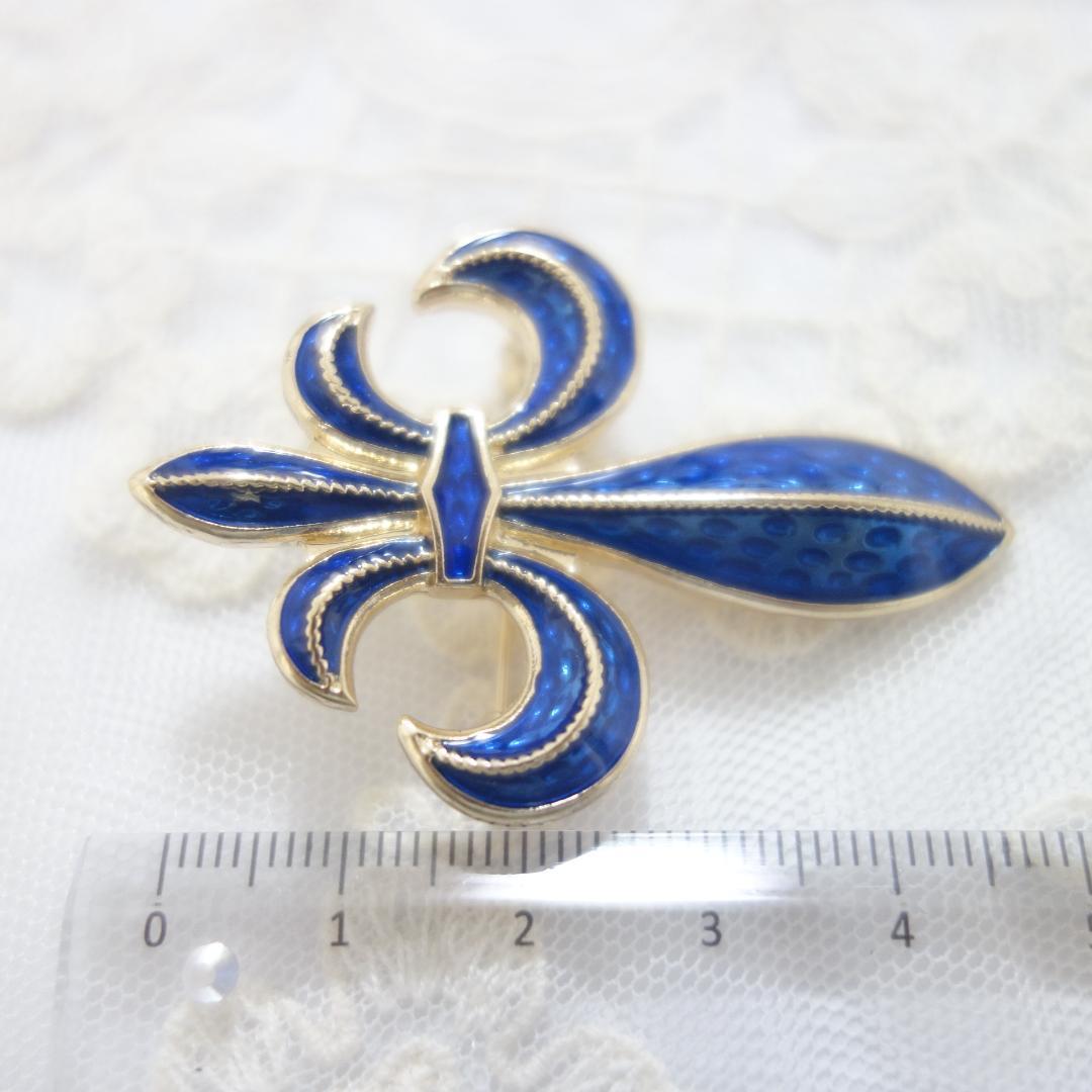 百合の紋章 綺麗なブルー/青のエナメル ヴィクトリアン・アンティーク調 ブローチ