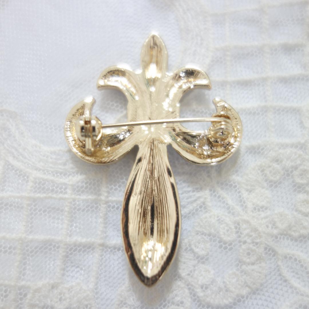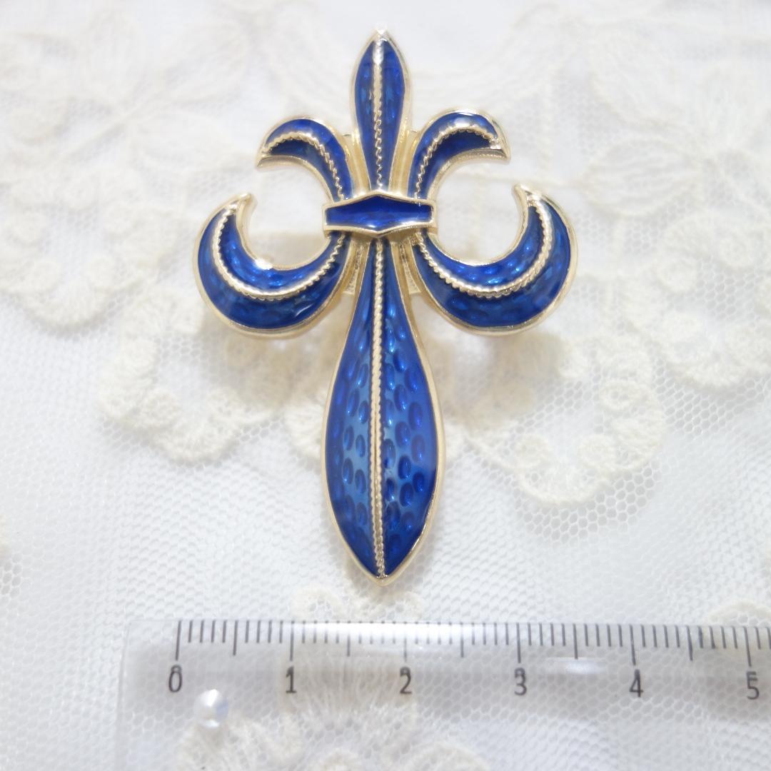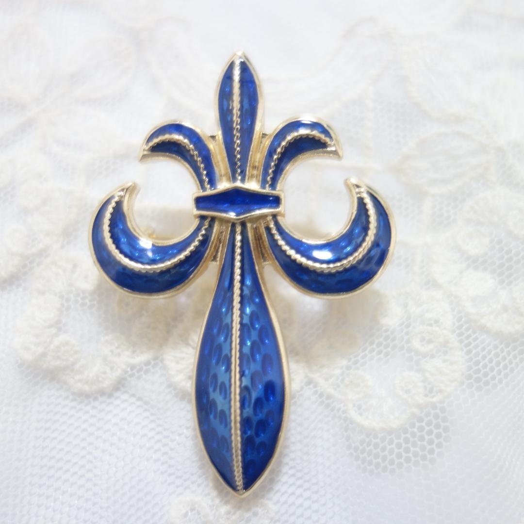 百合の紋章 綺麗なブルー/青のエナメル ヴィクトリアン・アンティーク調 ブローチ