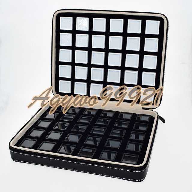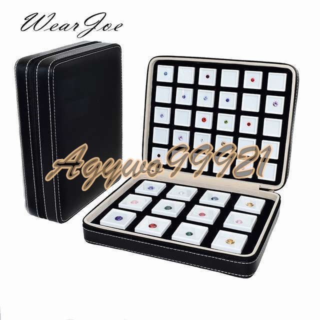 高品質 宝石ルースケース42個+トランクボックスセット レザー調ポータブル トラベル 原石ディスプレイトランクショー k00660