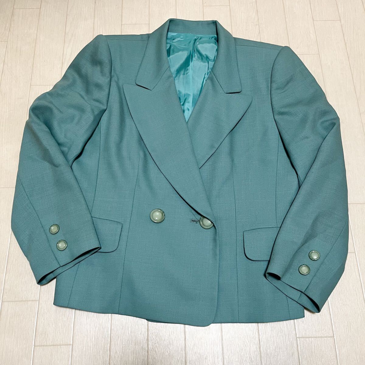 K21★① Leilian レリアン セットアップ テーラードジャケット スカート ダブルボタン 13 ライトブルー レディース 日本製 イタリア製生地