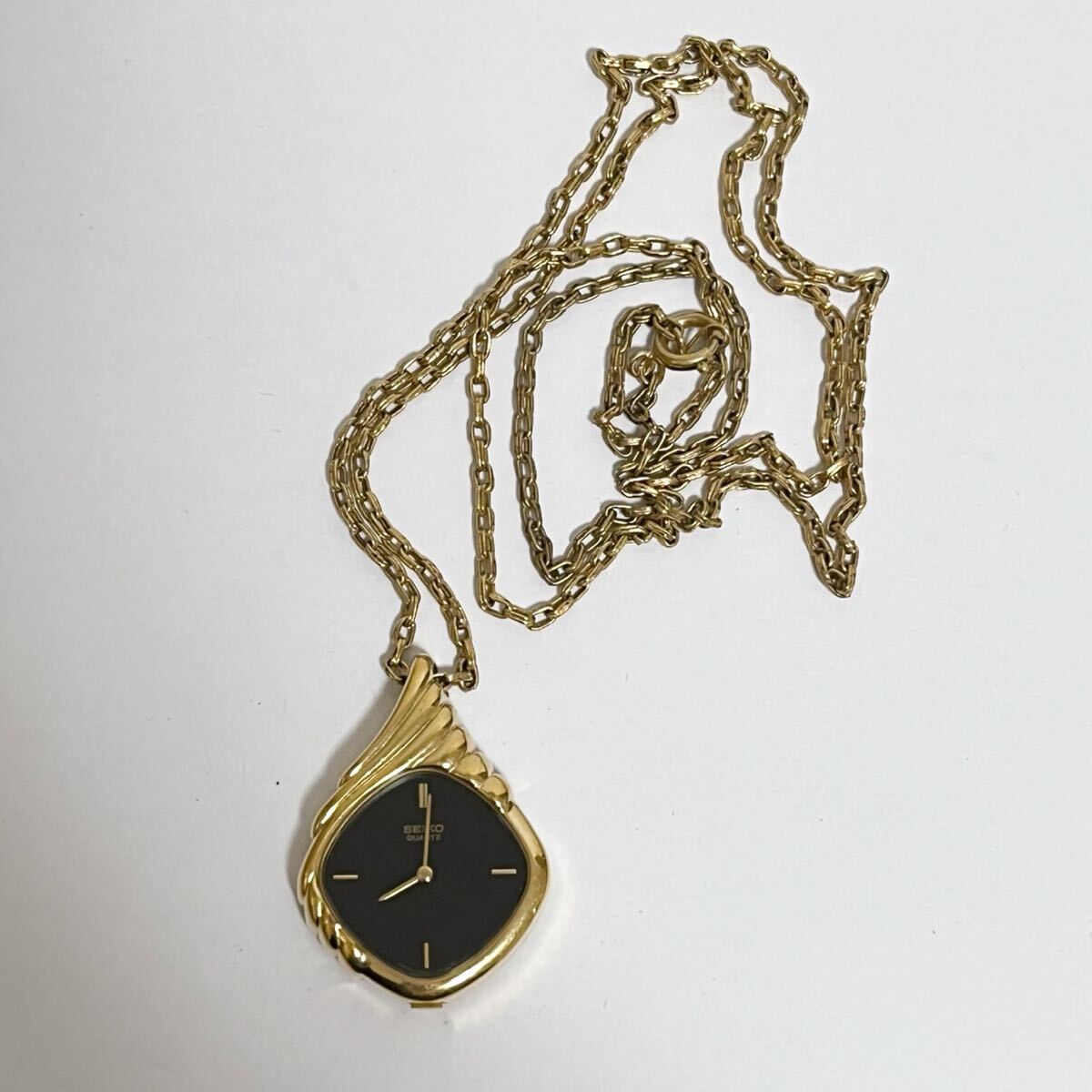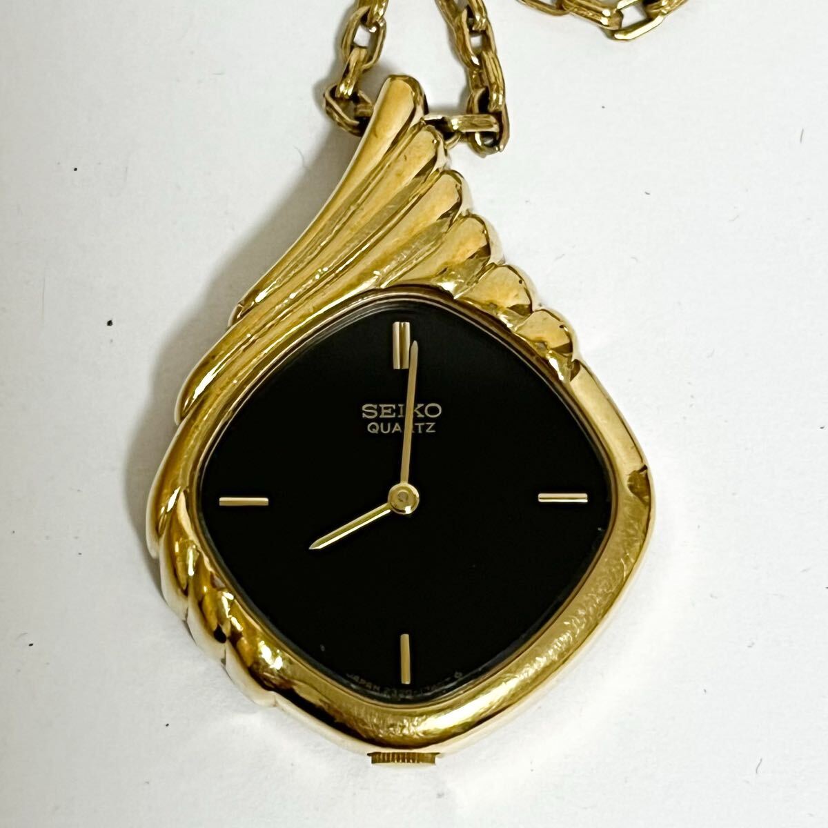 K21★ SEIKO 2320-5940 132786 セイコー ペンダントウォッチ ネックレス 時計 2針 ブラック ゴールド レディース