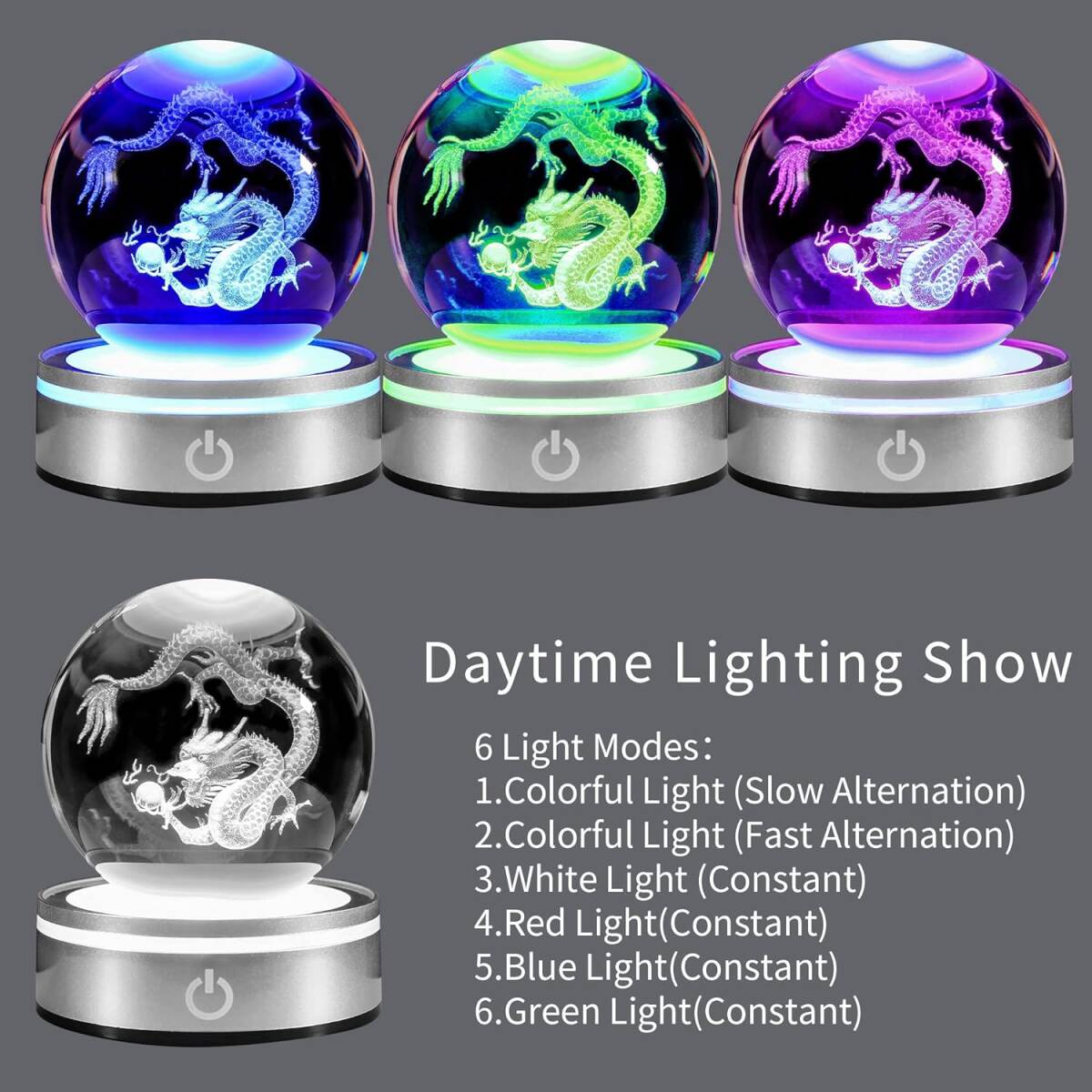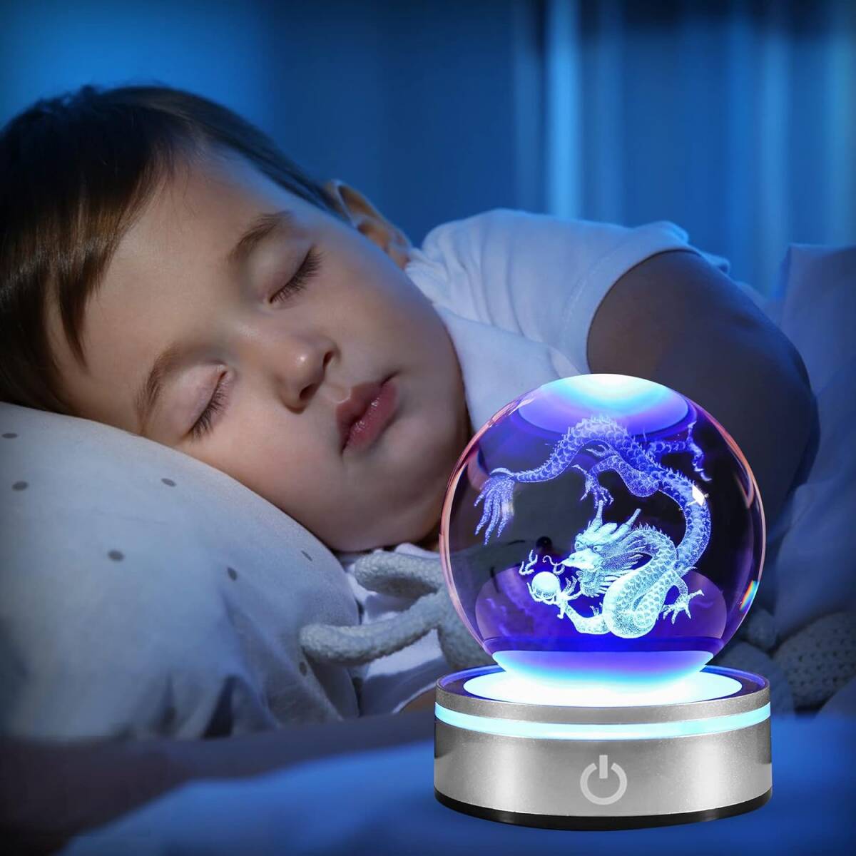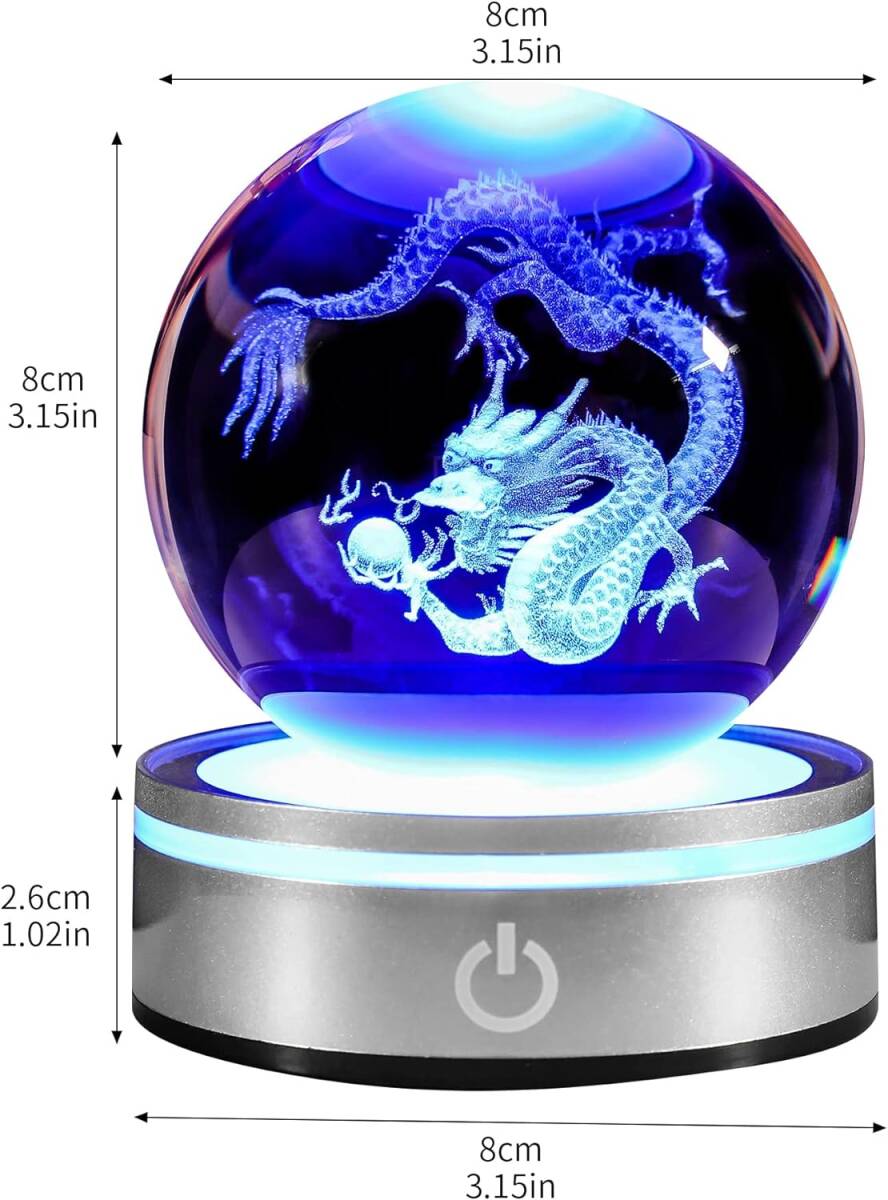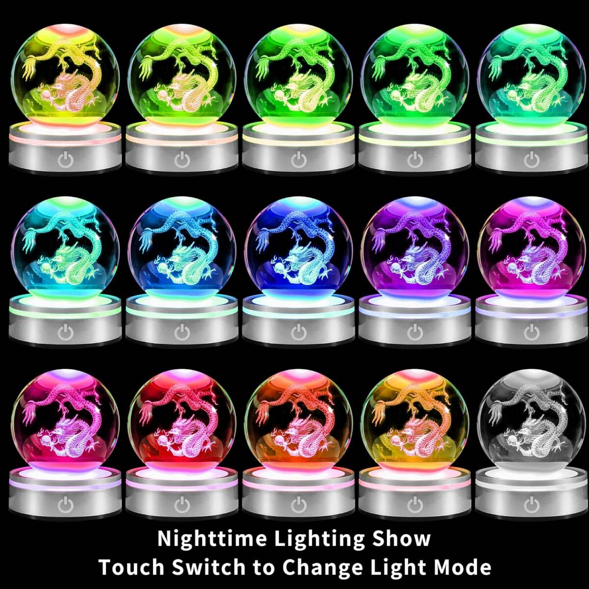 水晶球 ナイトライト 3D LEDライトが多色点灯する風水お守り おしゃれなヒーリング用品 ドラゴン 透明 プレゼント 雰囲気作り