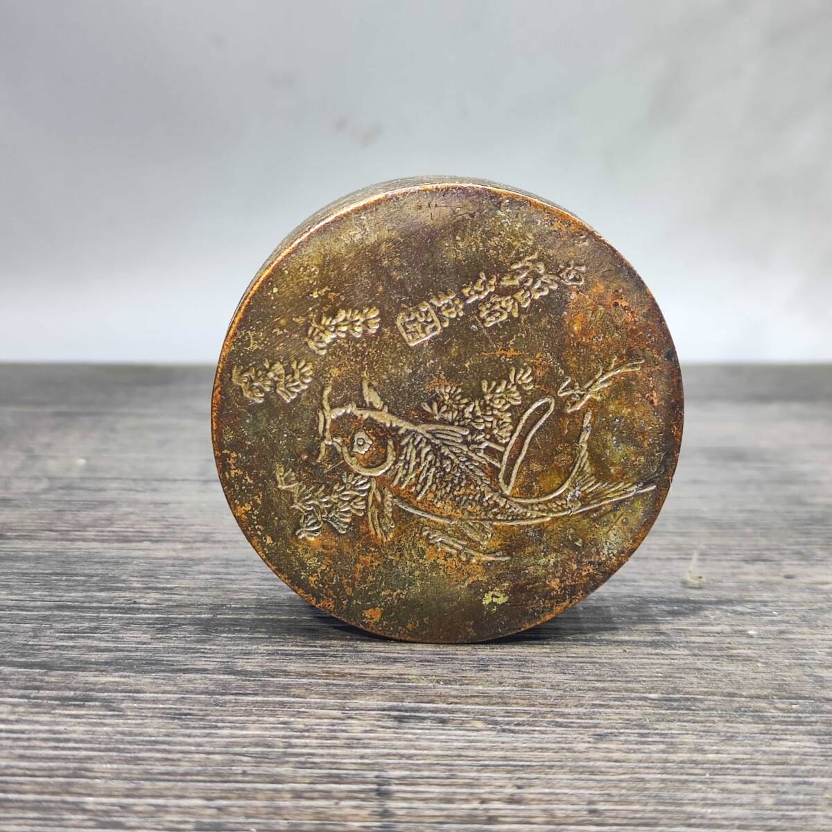 清 古銅彫 魚紋 墨盒 文房具 書道品 置物 極細工 古賞物 古美味 東洋彫刻 時代物 骨董 中国古美術