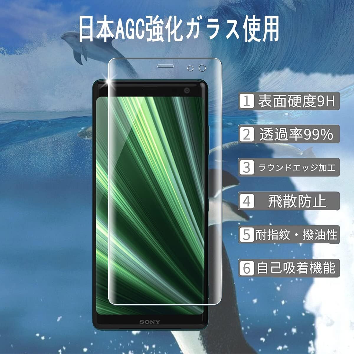【9H強度&飛散防止】対応 Sony Xperia XZ3 SO-01L SOV39 801SO 強化ガラス 保護フィルムは日本旭硝子素材を採用します。