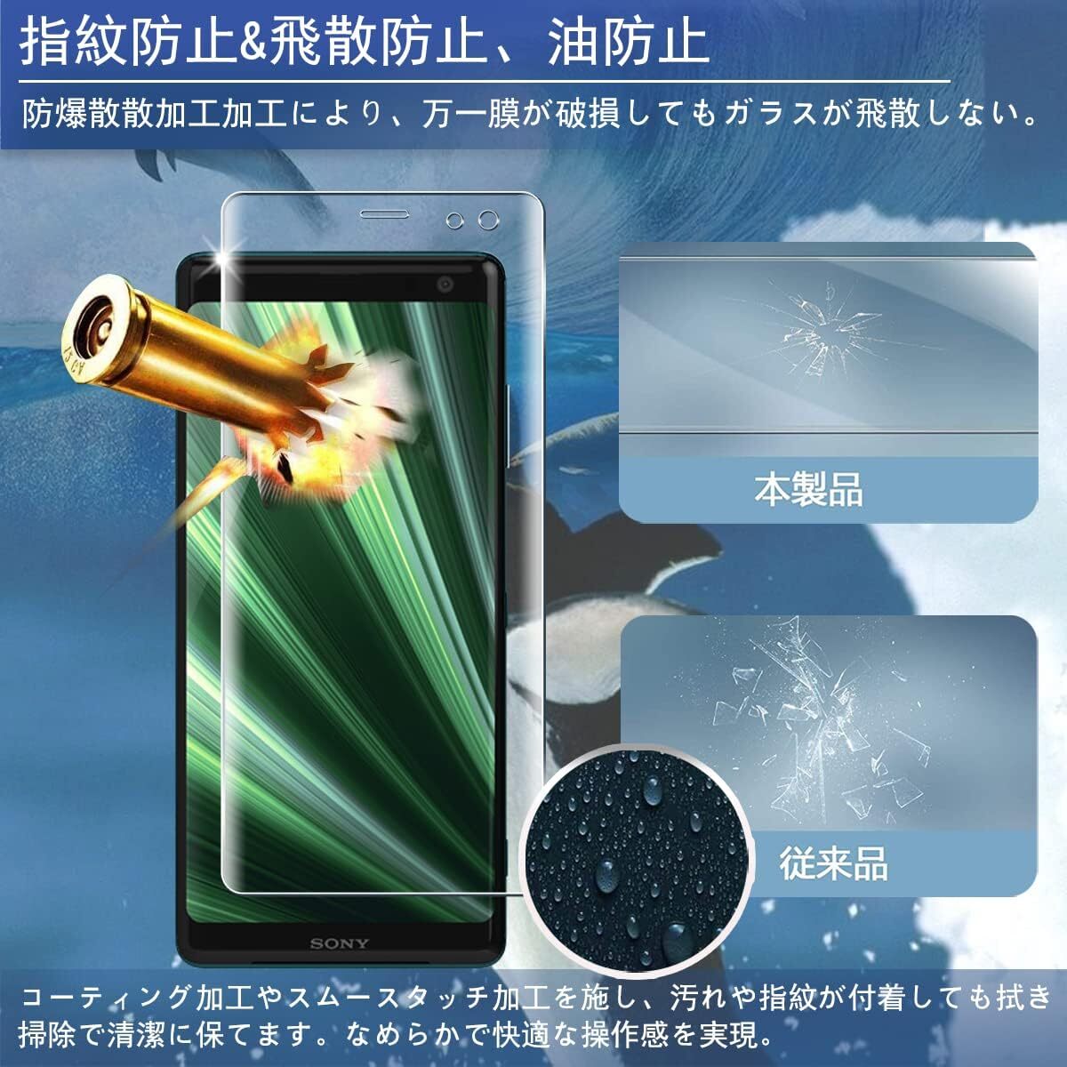 【指紋防止&取付簡単】 用 Sony Xperia XZ3 SOV39 801SO フィルムには疎油性コーティングが施されているので、スマホ表面には指紋が付きにくくなり、清潔でクリアな状態を維持できます。