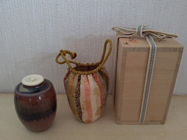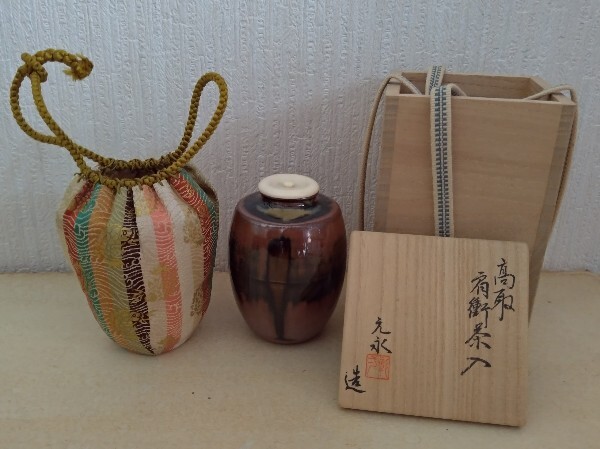 【未使用品】元永彰一 高取肩衝茶入 仕覆付 共箱 茶道具