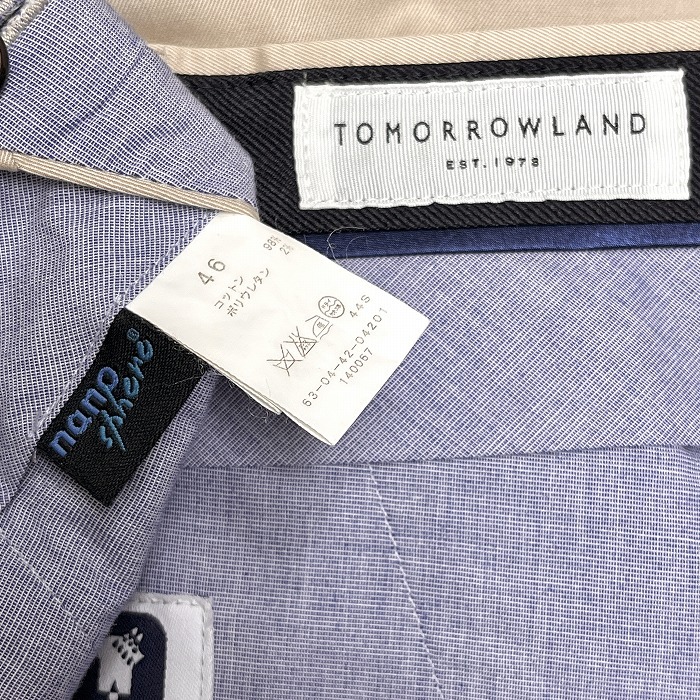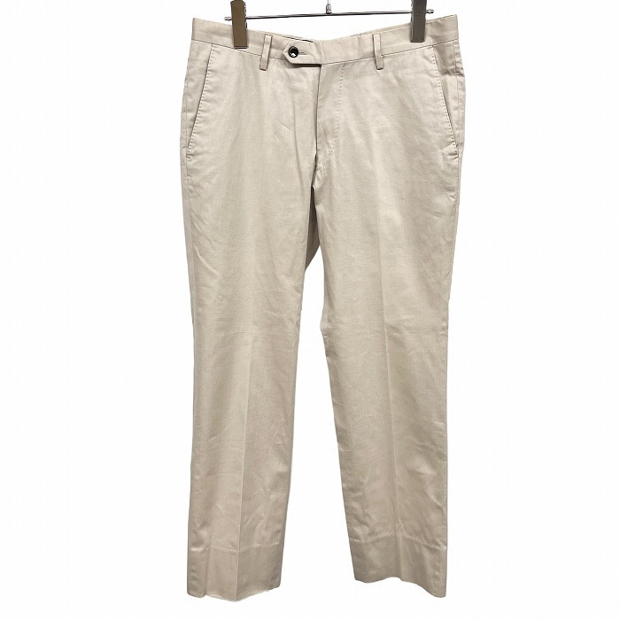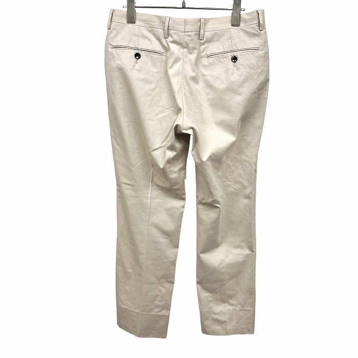 商品タイトル | トゥモローランド TOMORROWLAND パンツ 無地 若干テーパード ジップフライ 日本製 綿×ポリウレタン 46 ベージュ メンズ |