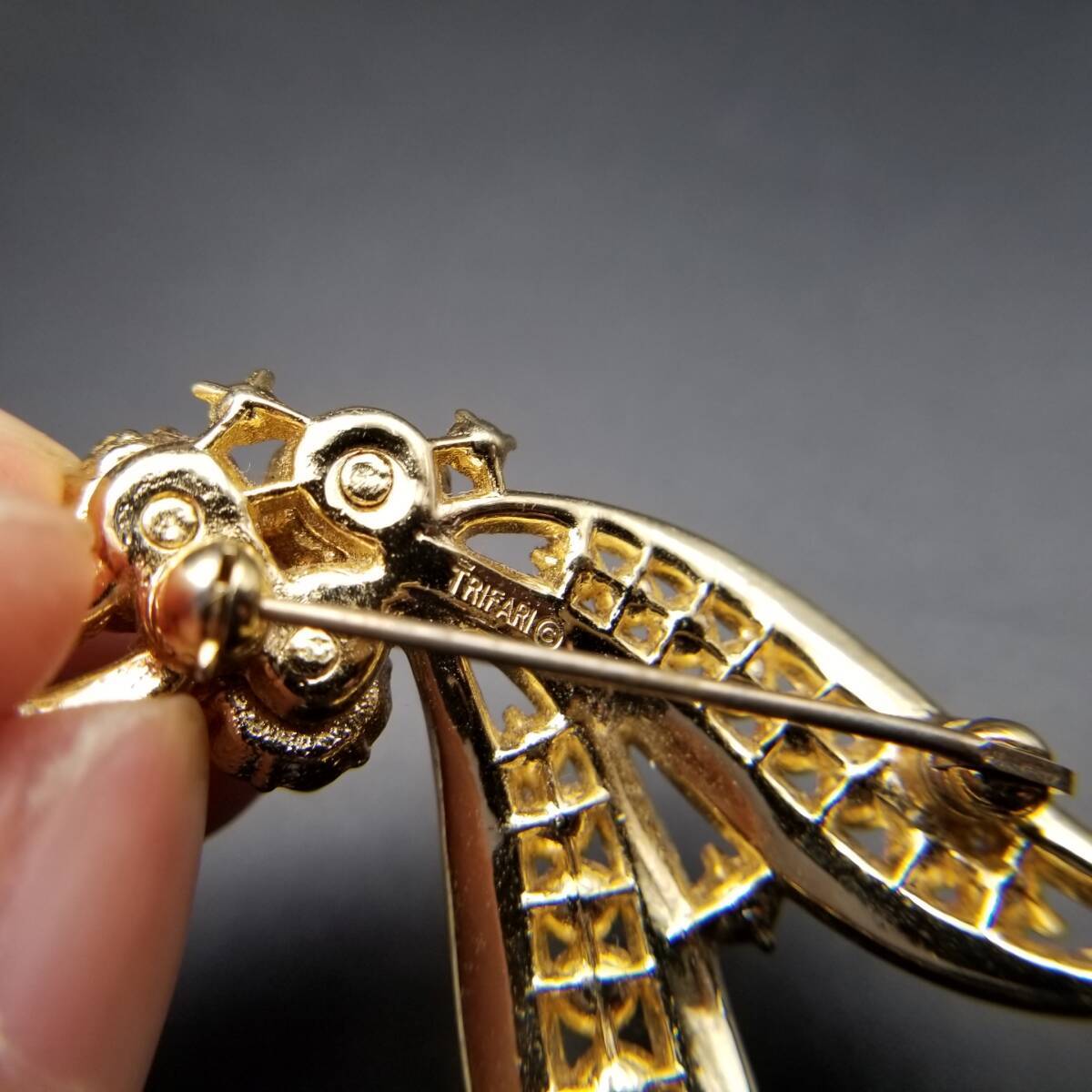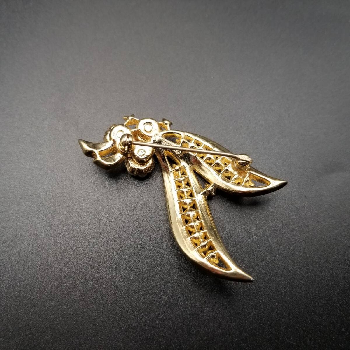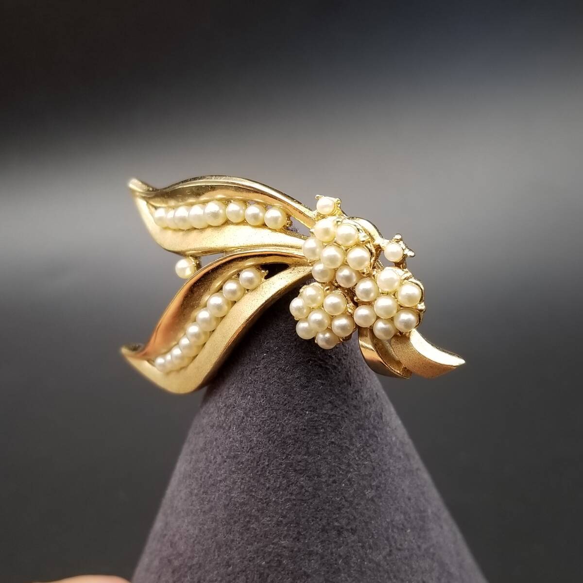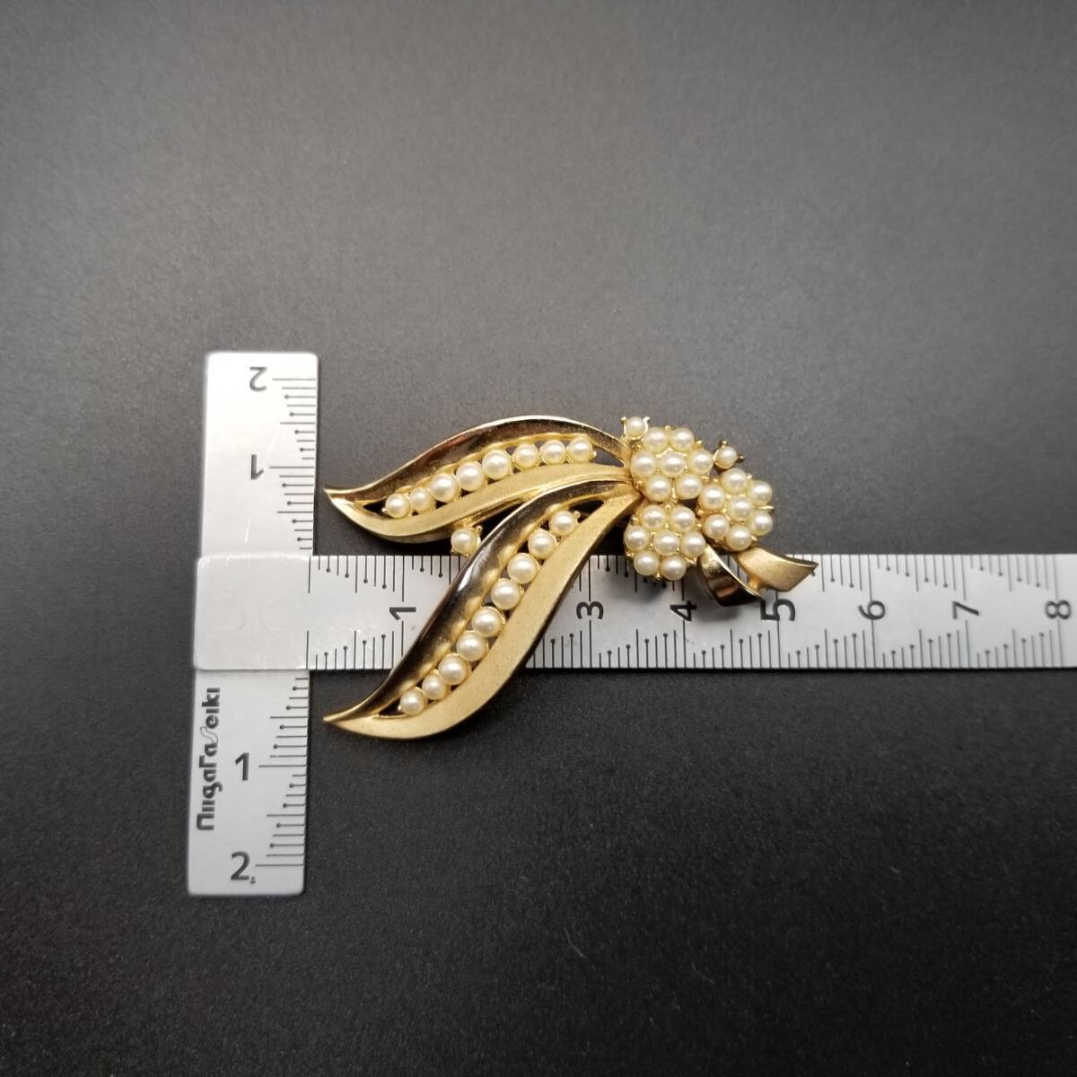 50'60's Crown TRIFARI 花束 植物モチーフ パール装飾 ヴィンテージ ブローチ ゴールドトーン 曲線美 エレガント フローラル Y17-W