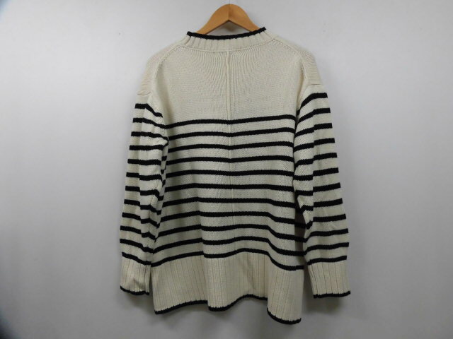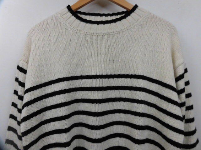 earth music&ecology アースミュージック&エコロジー ボーダー ニット セーター 長袖 丸首 トップス 柄 オフホワイト×ブラック 白×黒 F