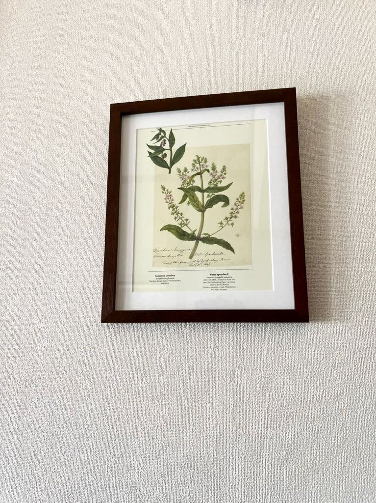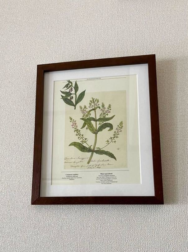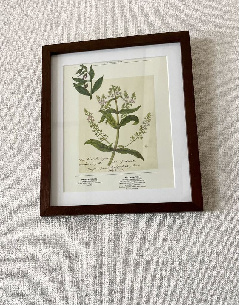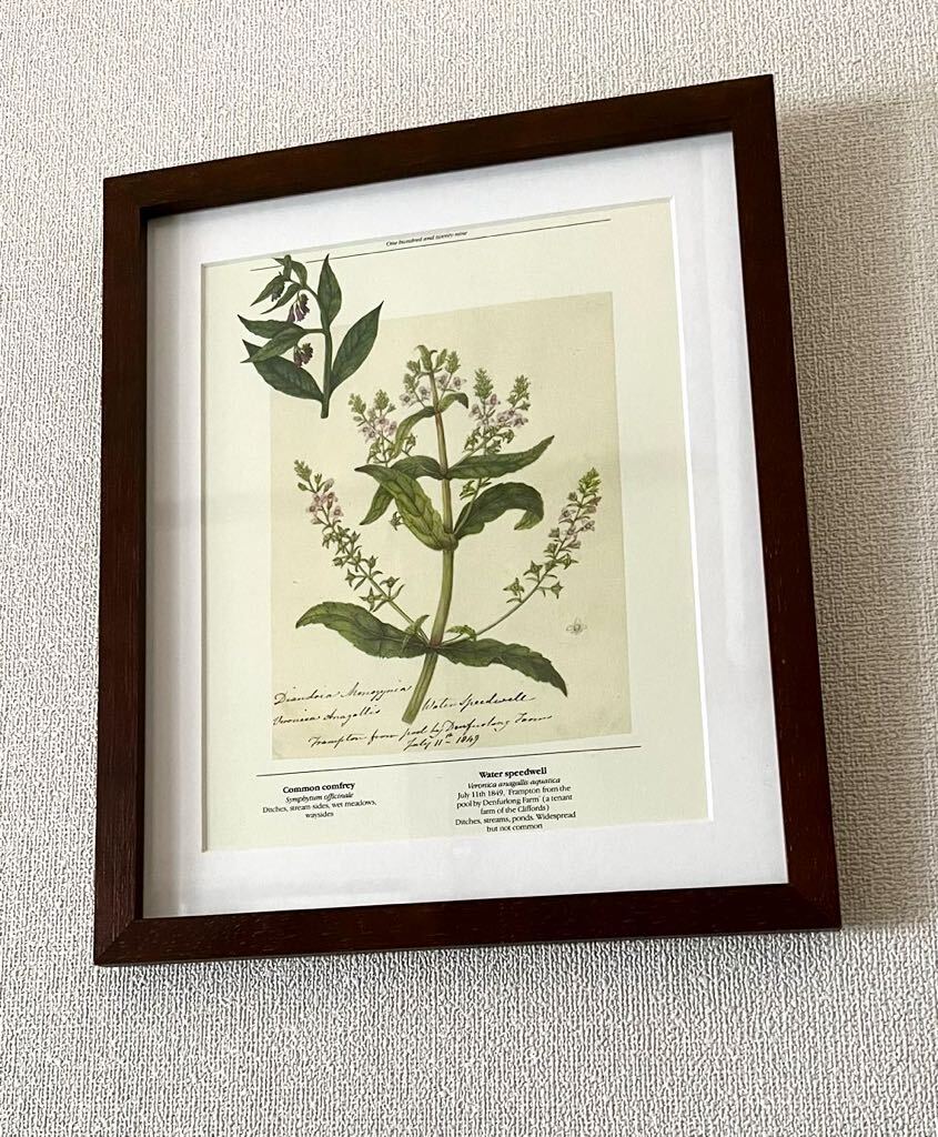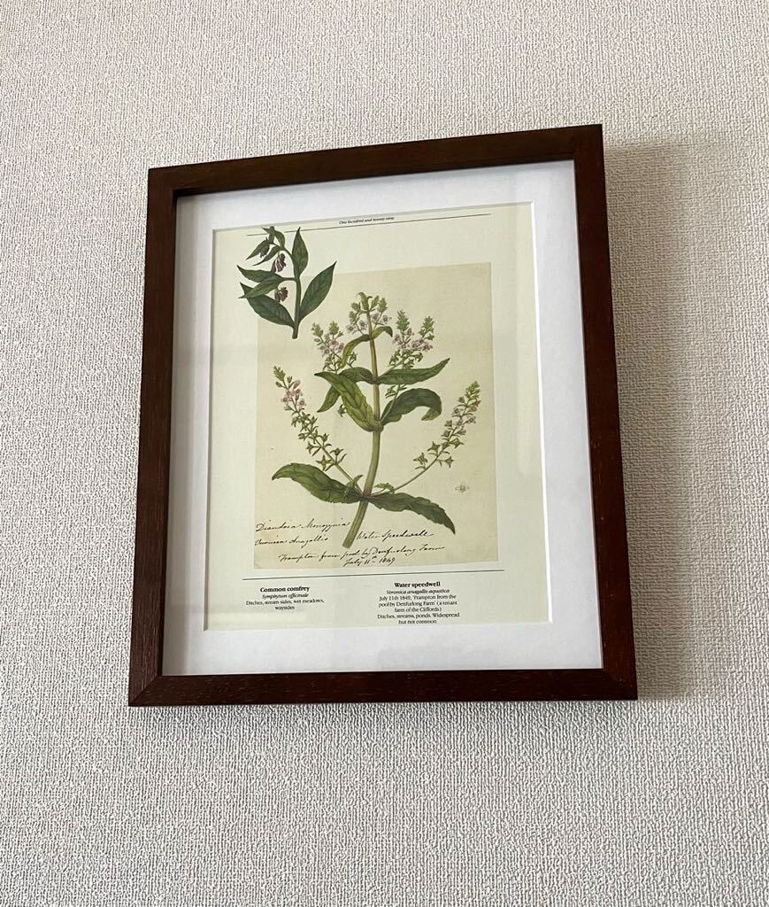 英国ヴィクトリア朝時代のカントリーサイドにおける草花が描かれた、美しい植物図鑑(印刷物)を額装した観賞用ボタニカルアートフレームです。(学名は分かりかねます。)