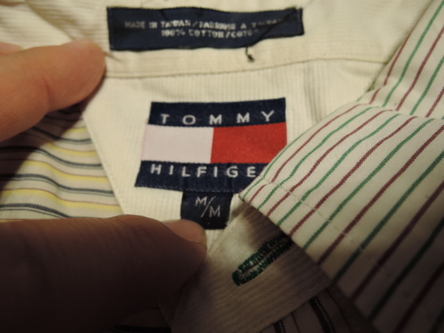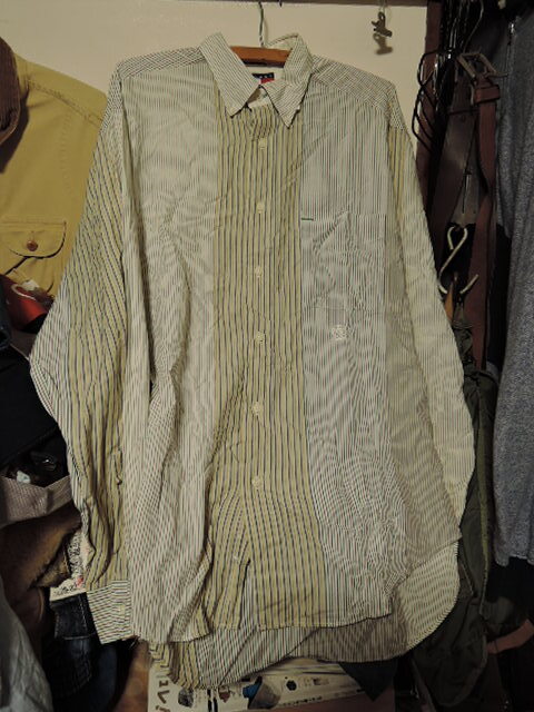 2102オールドOLD90'sトミー ヒルフィガーTOMMY HILFIGERボタンダウンB/Dマルチ パネル ストライプ シャツCRAZYクレイジー ビッグシルエット