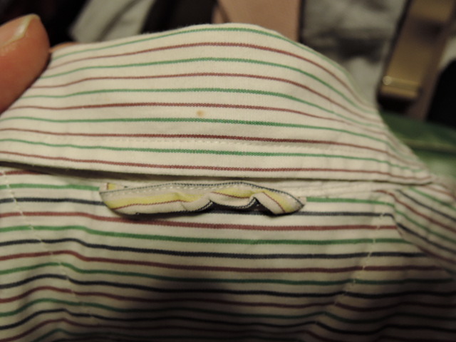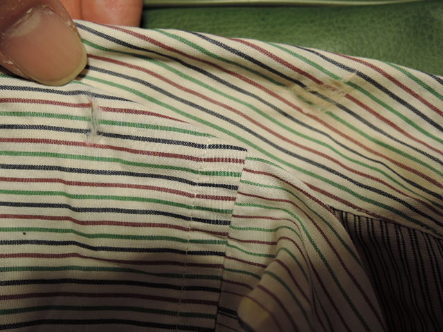 襟のバックにスポットシミ、フロント裾にもシミが見られます。