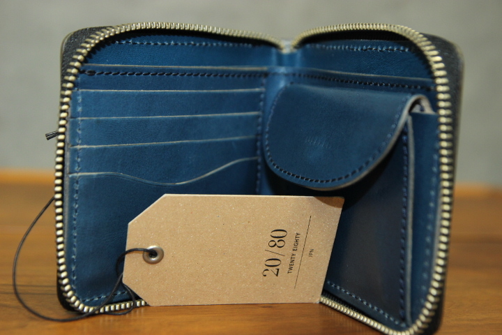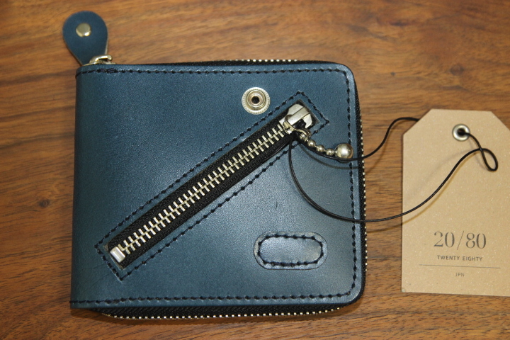 未使用 20/80 TWENTY EIGHTY (トゥエンティーエイティー) レザーライダース ウォレット / 2つ折り 革財布 / ブルー