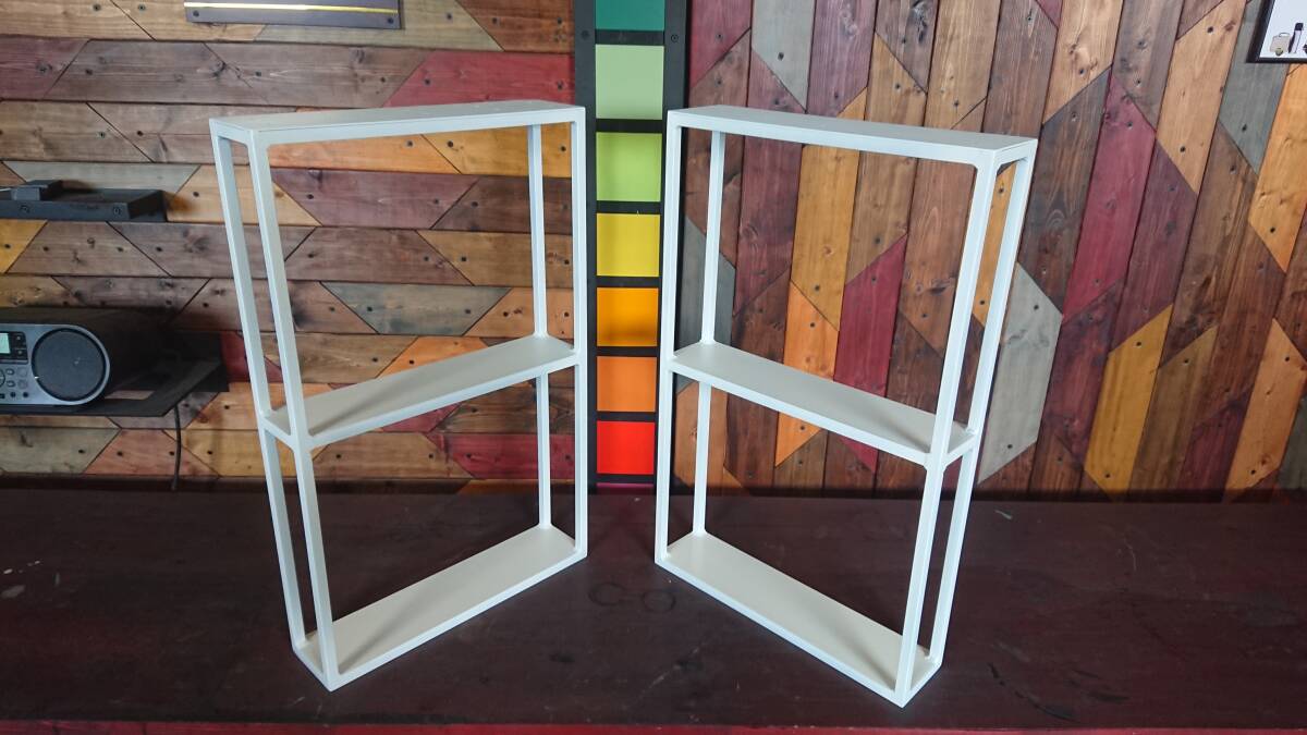 ハンドメイドの鉄脚2脚1組での出品です。12.7mmの角鉄を使用しておりますので、とても重厚感があります。またデザインもスタイリッシュでかっこいいと思います。