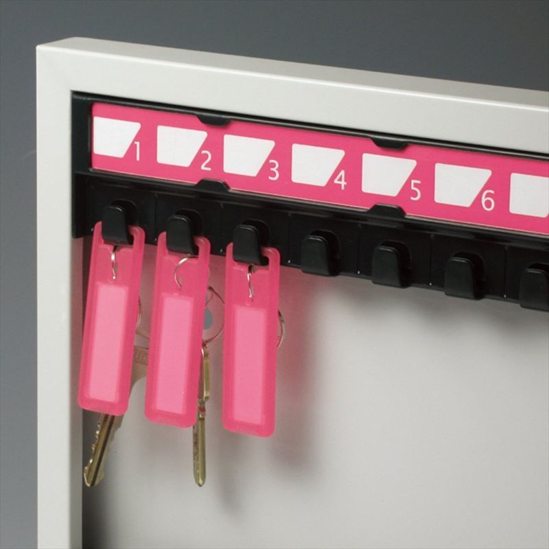文字を書き込める4色のキーホルダーつき。鍵を分類して管理できます。