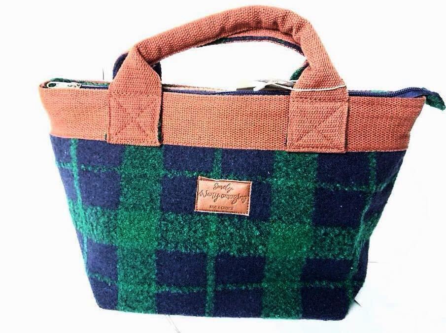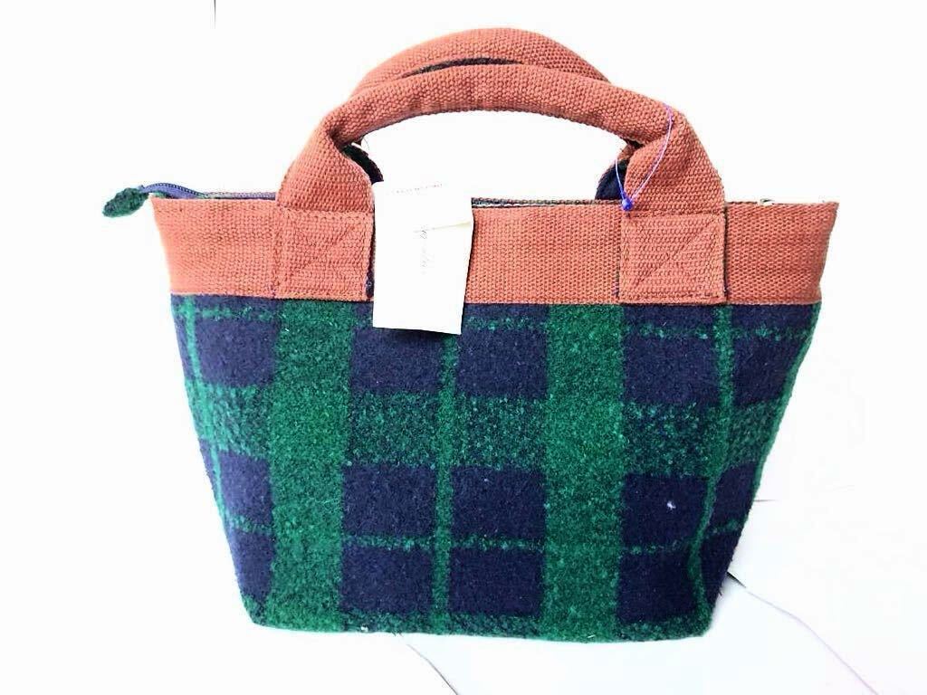新品タグ付★JOUJOULIER ジュジュリエ はっ水 トートバッグ ハンドバッグ チェック 緑 ランチバッグ お弁当カバン 裏地付 縫製しっかり