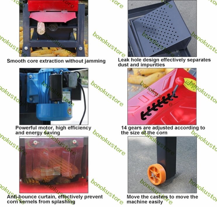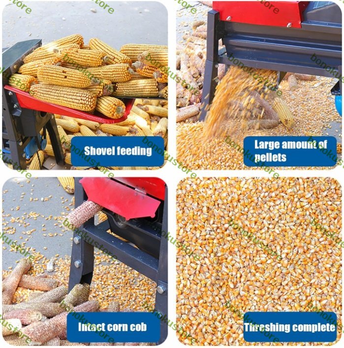 【効率的】:電動トウモロコシ脱穀機の動作中、力は均一かつ適度で、脱穀率は99%以上で、トウモロコシ粒が完全に脱落するのを防ぎ、芯が腐ることはありません。作業効率が高く、時間と労力を節約します。