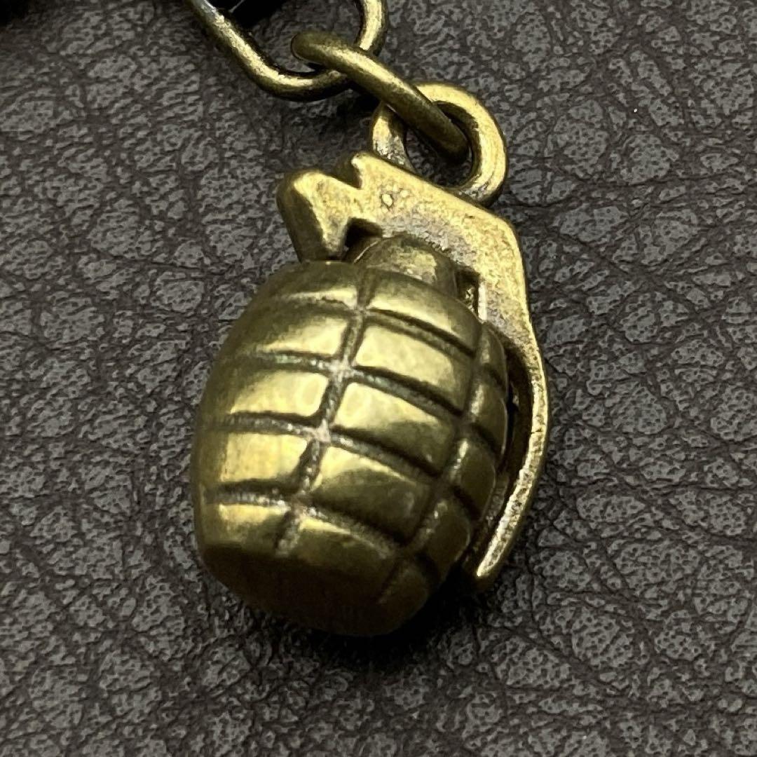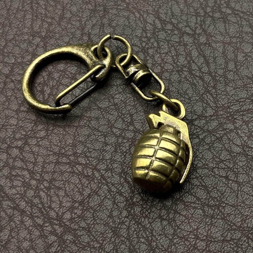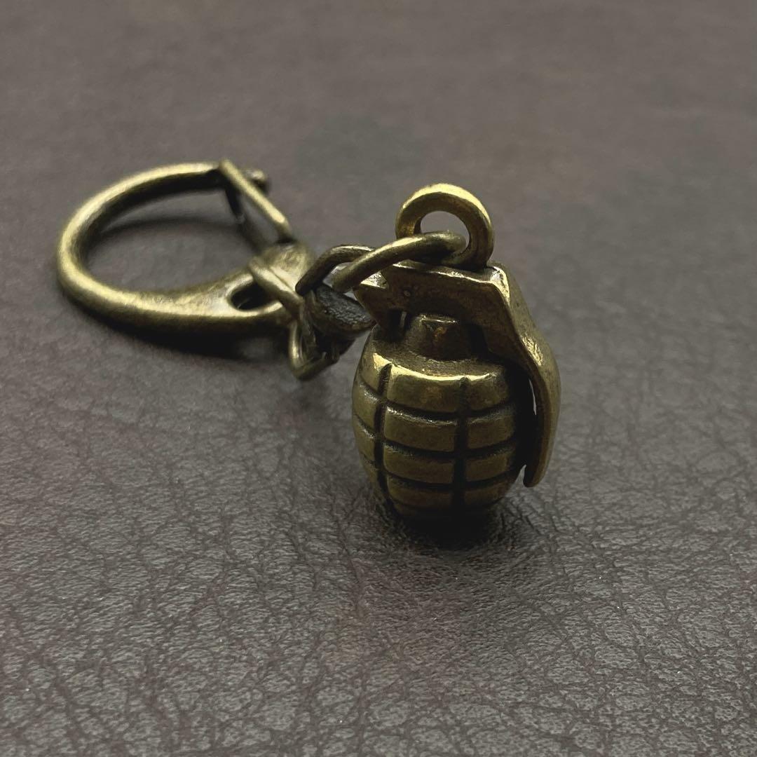 真鍮 キーホルダー キーリング ヴィンテージ ビンテージ 金色 アンティーク レトロ 真鍮製 ペンダントトップ 置物 チャーム 手榴弾 114