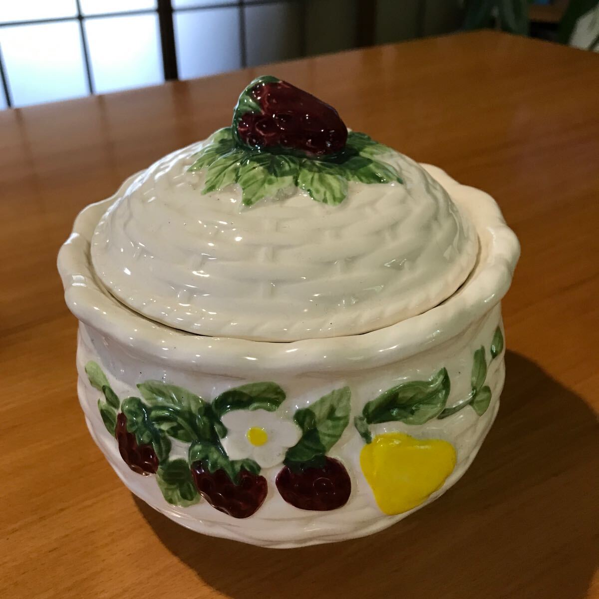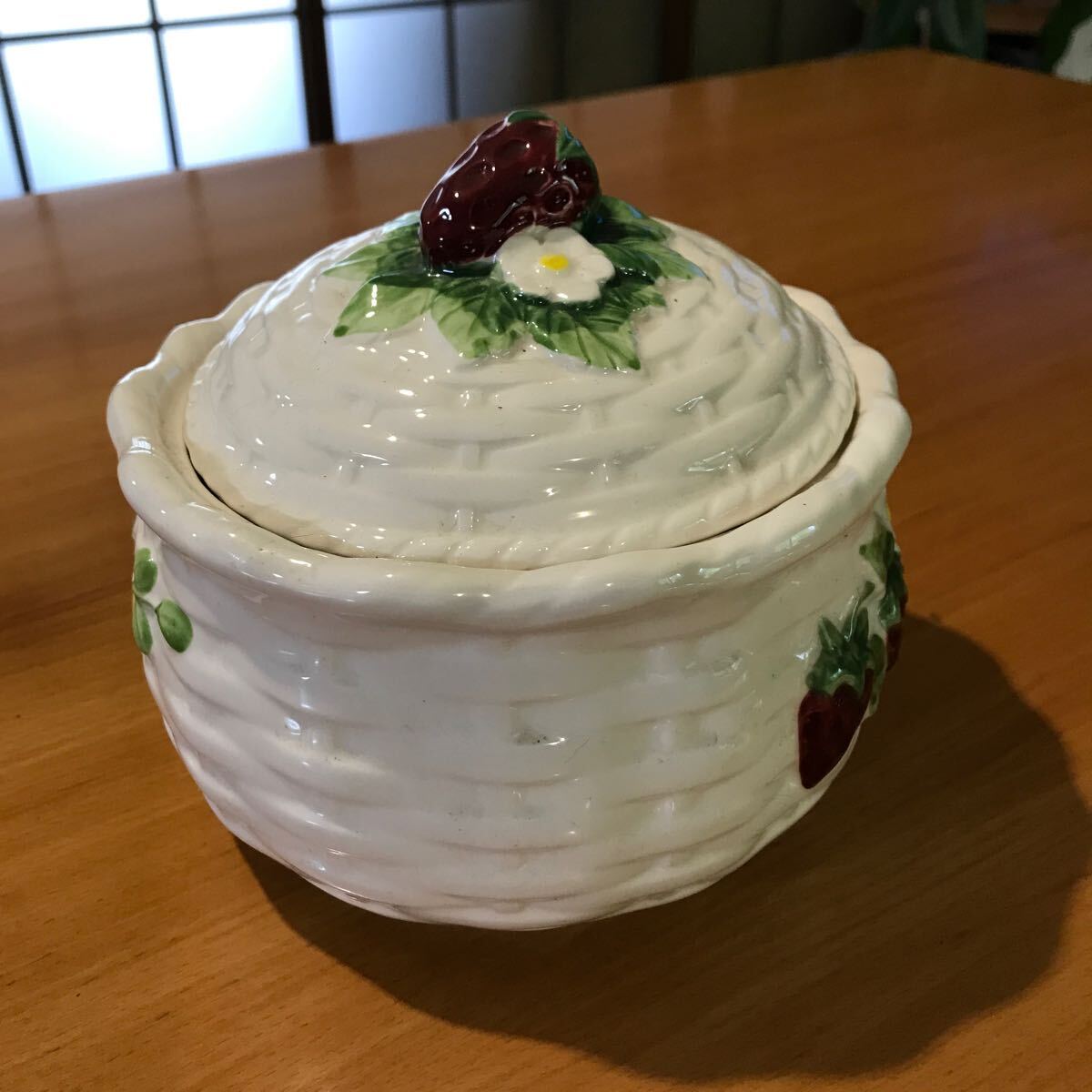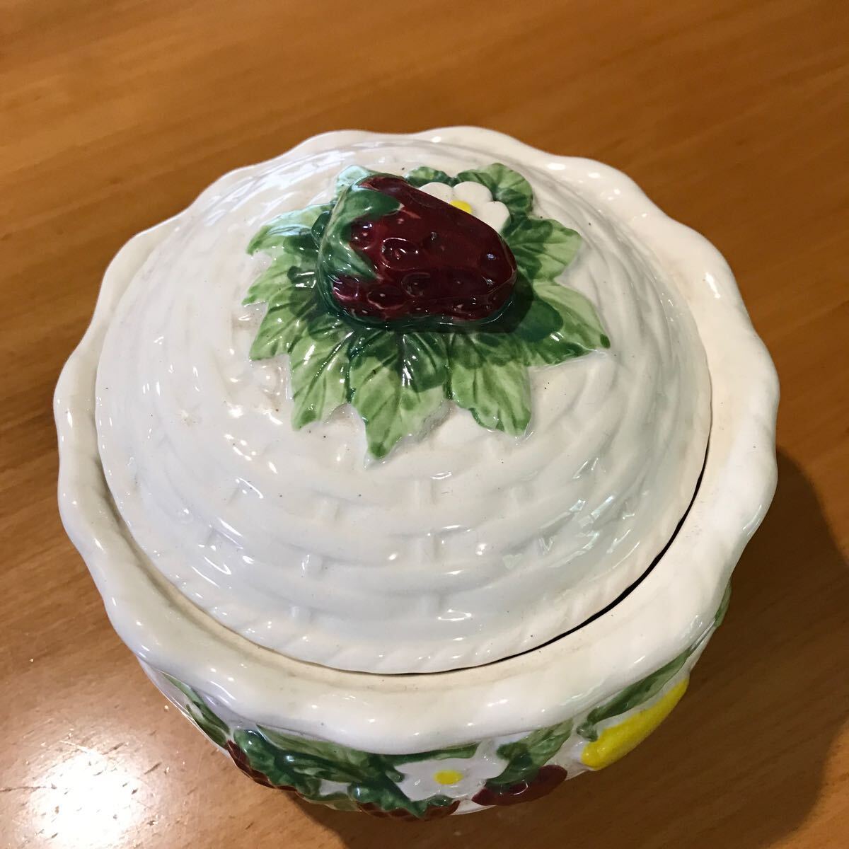 苺のモチーフが可愛い ふたつきの小物入れ