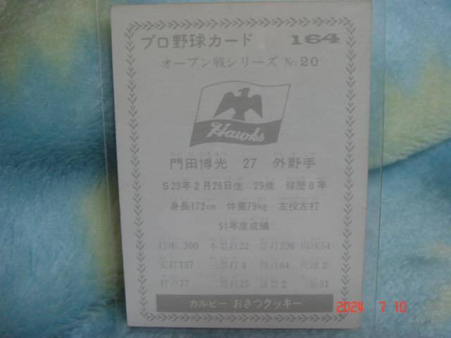 *カルビー 77年プロ野球カード NO.164『オープン戦シリーズ NO.20』 (門田/南海) 黒版・美品*