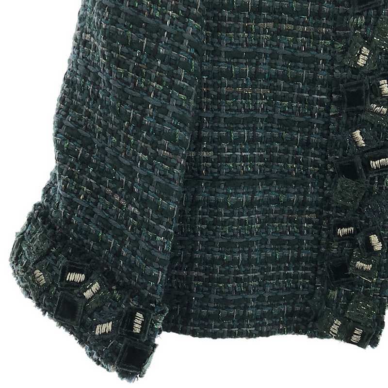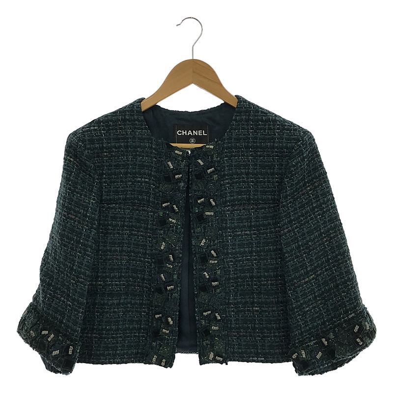 【美品】 CHANEL / シャネル | ウールツイード コサージュ装飾 ノーカラー ショートジャケット | 36 | グリーン | レディース