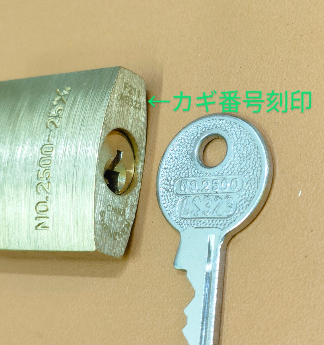 南京錠(No.2500-25㎜)のカギの挿し込み口に『AS323』の刻印がしている南京錠のみ解錠できます。